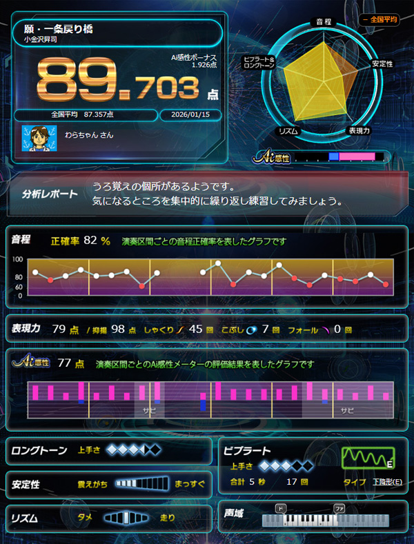 26 2026/1/15 15:41 京のにわか雨(生音) 小柳ルミ子(rumico) 82.715点 22
