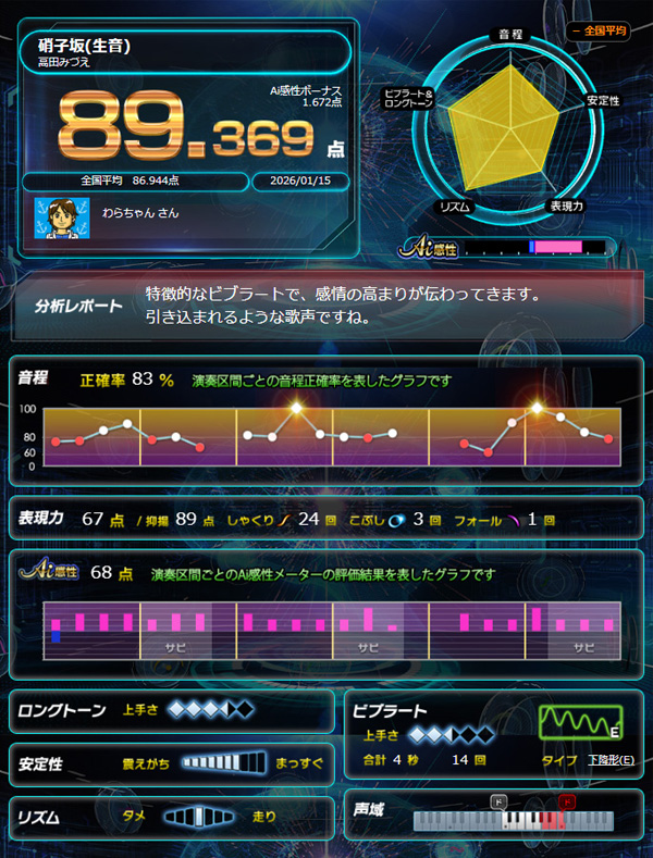 19 2026/1/15 14:07 桃色吐息(生音) 高橋真梨子 85.555点 16