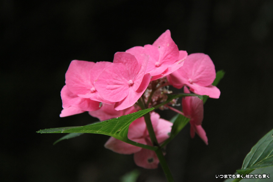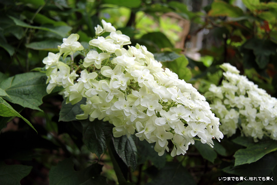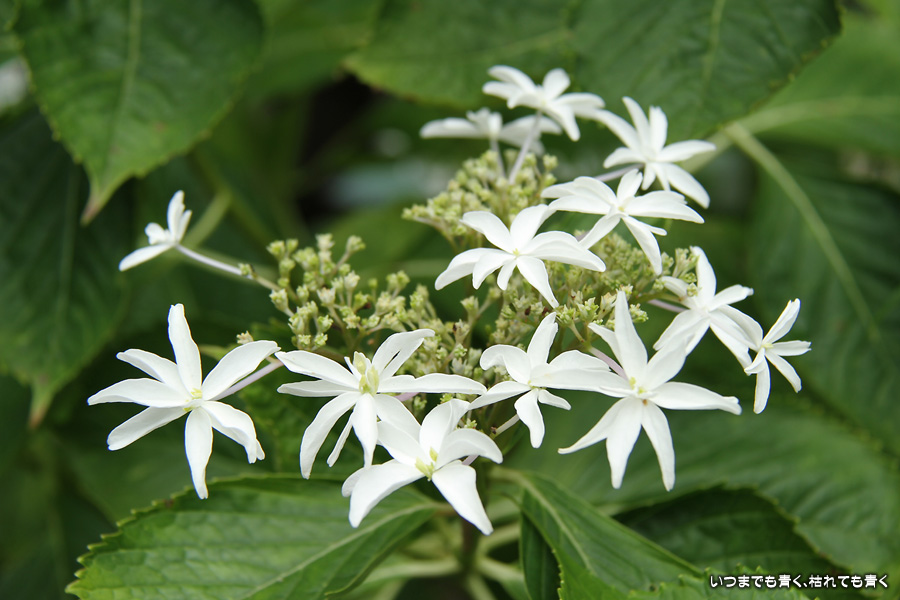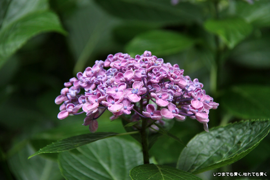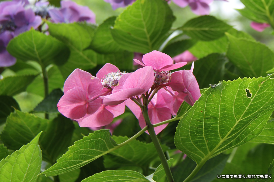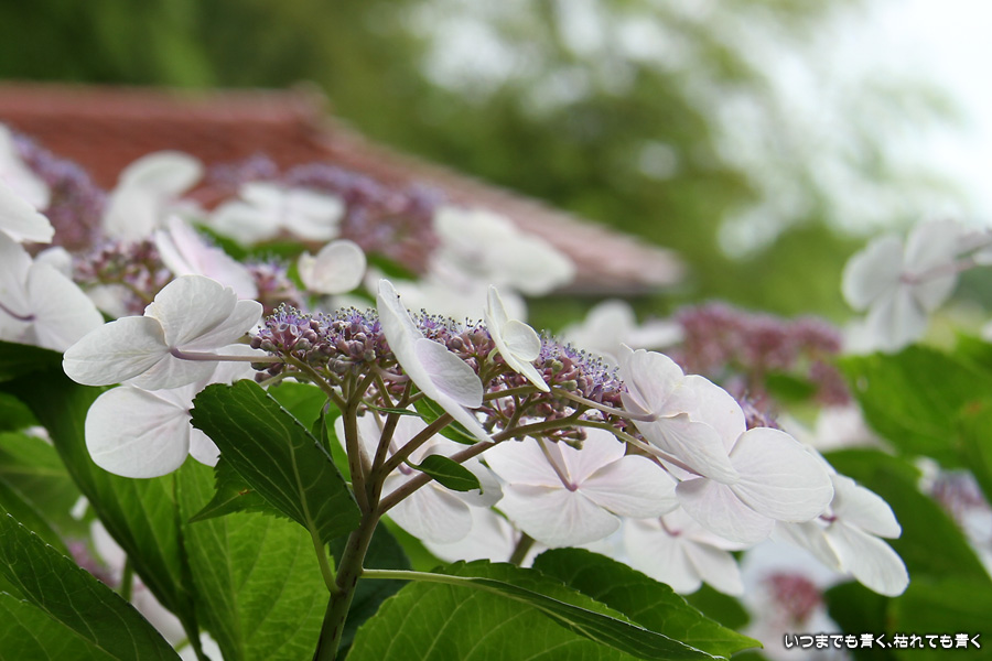 御霊神社の本堂の後ろをぐるりと巡るあじさいの小道の紫陽花です。いろんな種類の紫陽花がありますが、ここでは八丈千鳥という1年に二度咲きするあじさいが珍しいとのことです。