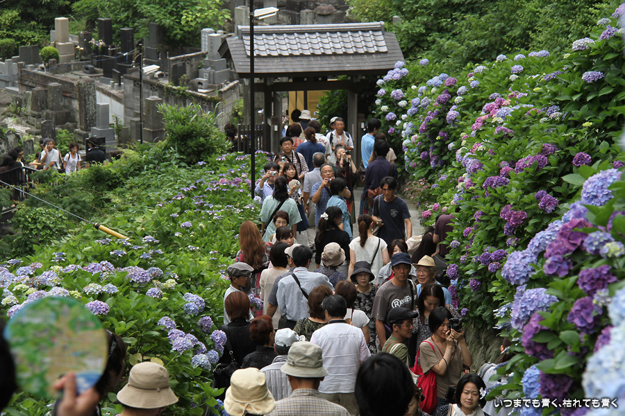 あまりに素晴らしい景色でしたので、一日目に続き二日目もやってきました。今回は、東結界(長谷寺側参道入口)から入り、西結界(極楽寺側参道入口)から出るということにしましたが、振り返って由比ガ浜の見える景色の撮影が多くなるので、結局どちらから入っても同じだとわかりました。景色はとても美しいのですが、結局人が多いのは日が変っても同じでした。