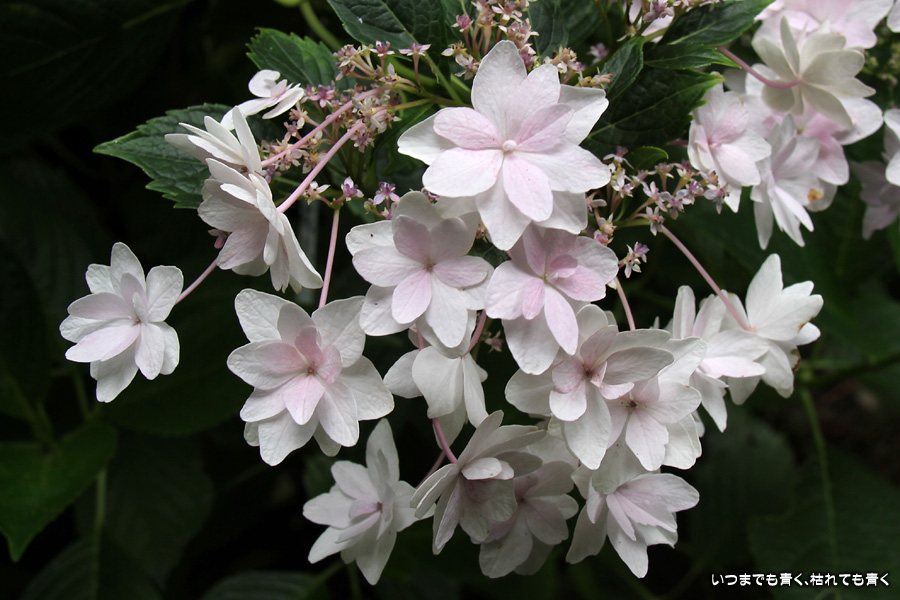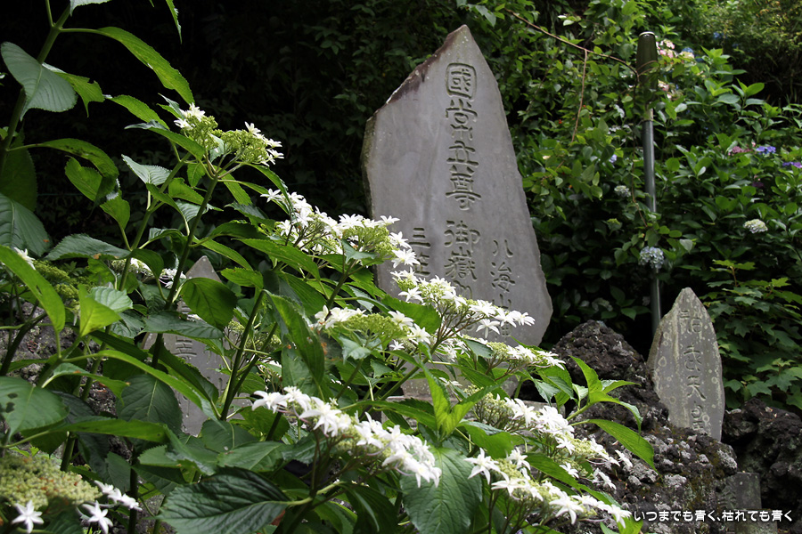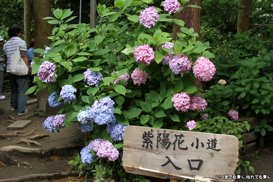 御霊神社の江ノ電沿いは、紫陽花と江ノ電の撮影名所ですが、江ノ電沿いの紫陽花はちょっと元気がなかったです。本堂の裏の「あじさいの小道」の紫陽花は変わった種類、いろいろな色の紫陽花が元気に咲いていて、とてもきれいでした。