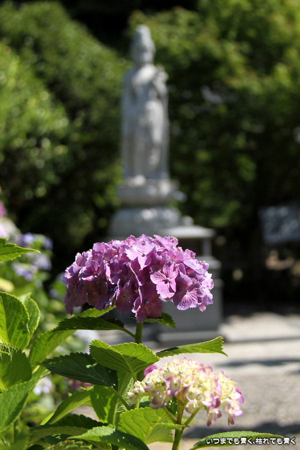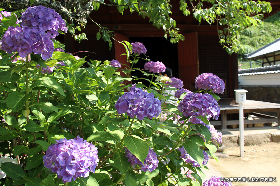 末娘の弓道初段審査が蒲郡であったので、待つ間に奥さんと長女と三人で近くにある三河のあじさい寺、瑞雲山本光寺に行ってきました。あじさいの時期の本光寺には2010年、2011年、2012年と過去に3度来たことがあり、今回で4回目となります。朝一番に訪れましたが、今日はJR東海のさわやかウォーキングのスタート駅が本光寺の近くの三ヶ根駅となっており、そのコースに本光寺が入っていたため、今までに経験したことがない大勢の人出でした。 紫陽花自体は、咲きはじめで若く美しい花ばかりでした。雨が似合うあじさいですが、梅雨の合間の快晴の中での紫陽花もなかなか華やかでいいものです。 今回は、初めて御朱印をいただいてきました。