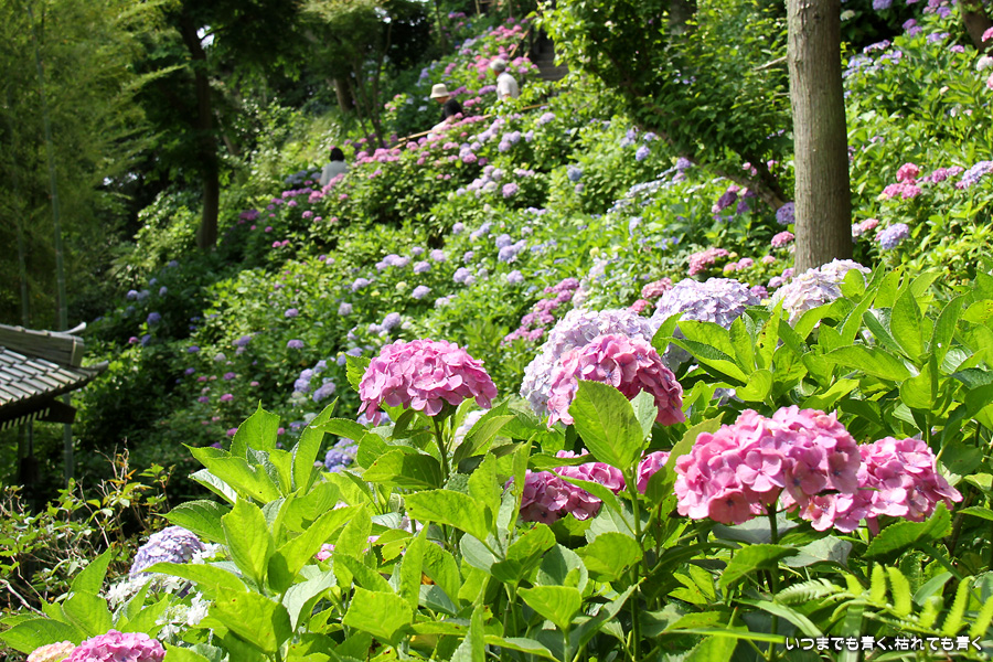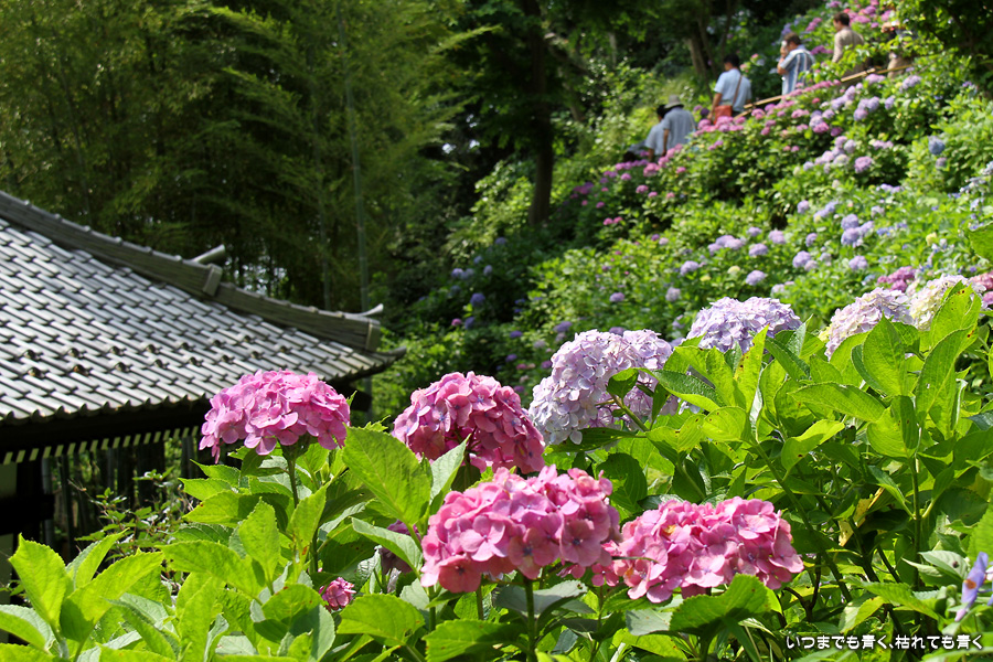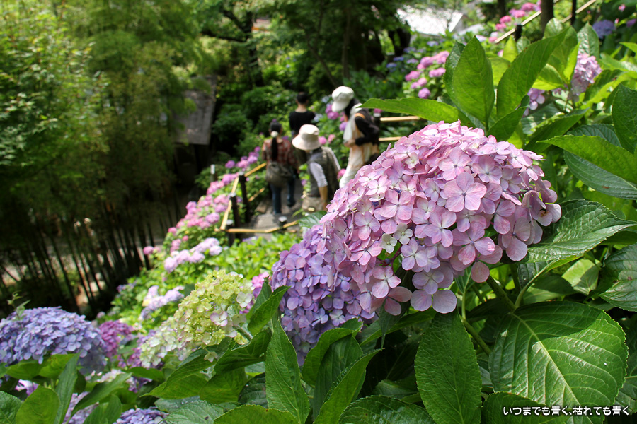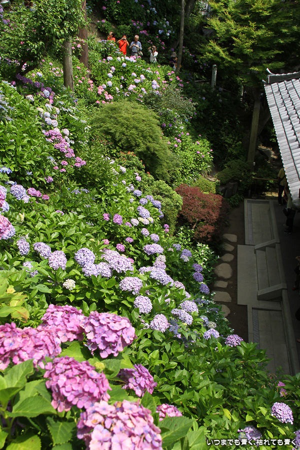 長谷寺の眺望散策路の紫陽花はいつも素晴らしいですが、ここも明月院同様、今回はすでに傷んでいる花が目につきました。選んで撮影したつもりですが、撮った写真を見るとかなり目立つものもありました。