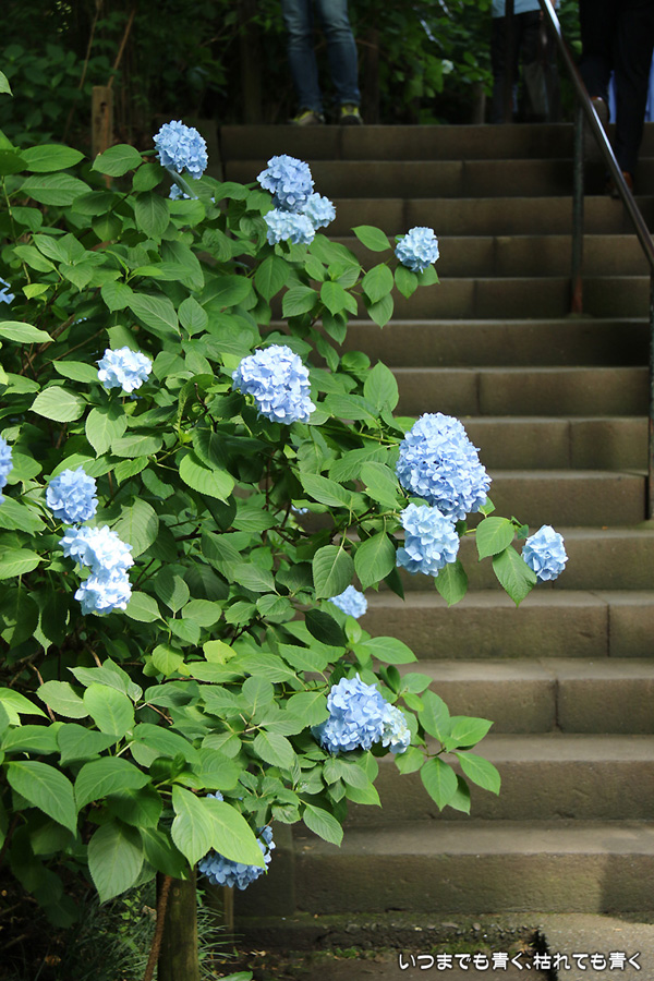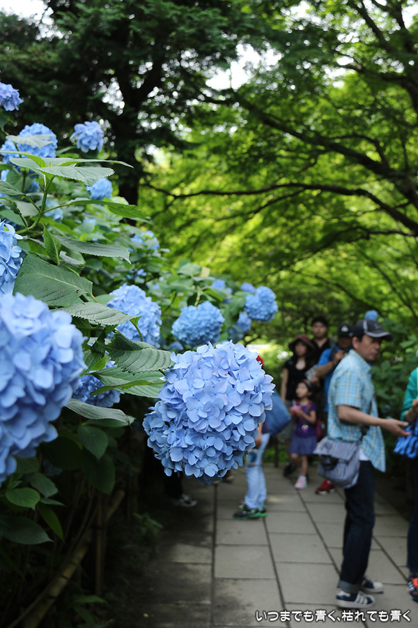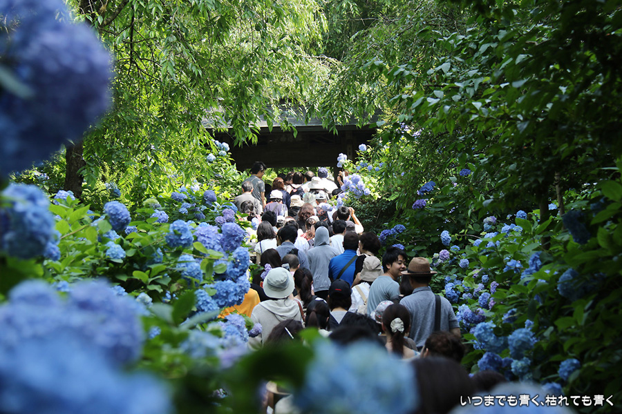 奥さんや娘は今年は都合がつかなかったので、今年の鎌倉は久しぶりのぶらりひとり旅。 今年はいろんな花の時期が早いので、例年より早い13日、14日に行ってきました。 ホテルに荷物を預ける時に、ホテルのお姉さんに「紫陽花は見頃ですか」と聞いたら、「まだ雨が降っていないので外側だけで全体には早いと思います」との答え。心配しながら13日に明月院、浄智寺、葛原岡神社、銭洗弁財天、14日に長谷寺、御霊神社、極楽寺などを見てきましたが、心配することもなく、どこもみんな見ごろでとてもきれいでした。この土日で正解だったと思います。紫陽花の花は長持ちするので、翌週の20日、21日もまだ充分楽しめると思います。 まずは、明月院のあじさい。 今年も明月院ブルーのあじさいがとても美しかったですが、その中に紫のあじさいが混じってきているのが気になりました。明月院の参道のあじさいは、明月院ブルー一色であってほしいものです。それにしても、人が多すぎ。写真を見ていただければわかりますが、あじさいを撮っているのか人を撮っているのかわからない状態です。今年はどうもテレビ番組の影響かあるようです。