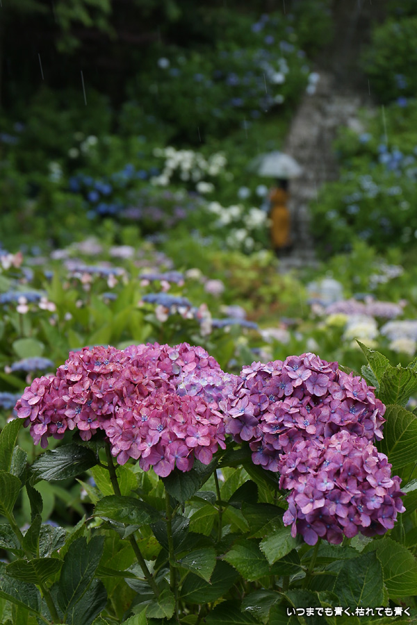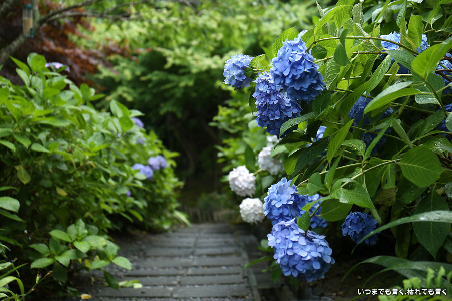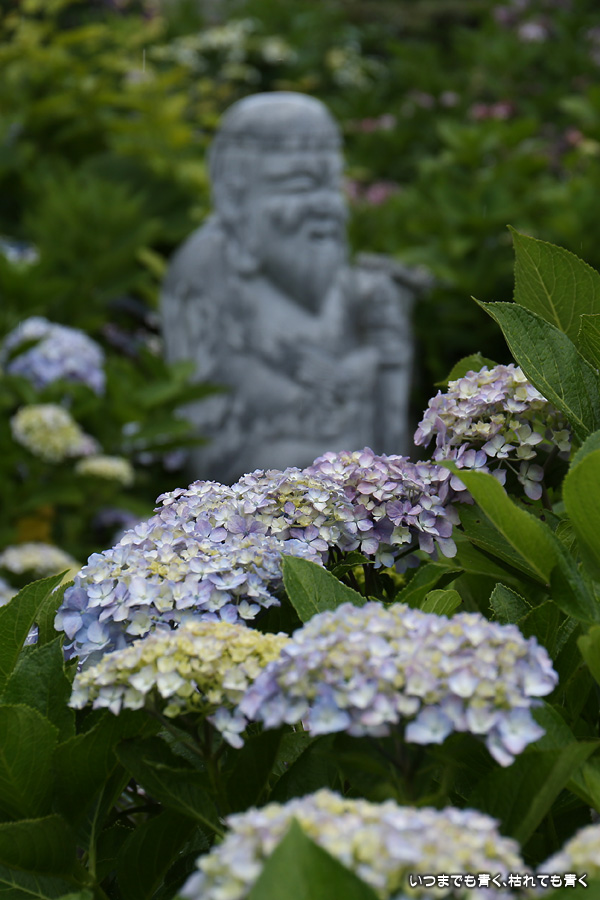 本勝寺は昨年に訪れて気に入ったあじさい寺です。昨年は閉門ギリギリでご住職のご厚意で時間が過ぎても拝観させていただいたのですが、やはり落ち着かなくてじっくりと写真を撮ることができなかったので、今年リベンジでやってきました。今年は昨年の花の状態よりも良くて美しい紫陽花を撮影することができました。最初は日差しがきつい天候でしたが、途中でひと雨降って濡れた紫陽花を撮影することもできました。