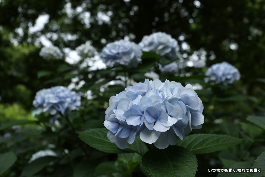 テレビのニュースで紫陽花がたくさん咲いていることを知り、初めて訪れました。期待以上の素晴らしい紫陽花でした。広い境内にはたくさんの種類の紫陽花が植えられていて、本殿の裏は紫陽花園になっています。訪れた時期も良かったのかどの花も傷みの無い美しい花ばかりでしたし、境内の風景に紫陽花が良く似合っていて写真も絵になりました。ただ、暑さと湿気で撮影は吹き出す汗との戦いでもありました。