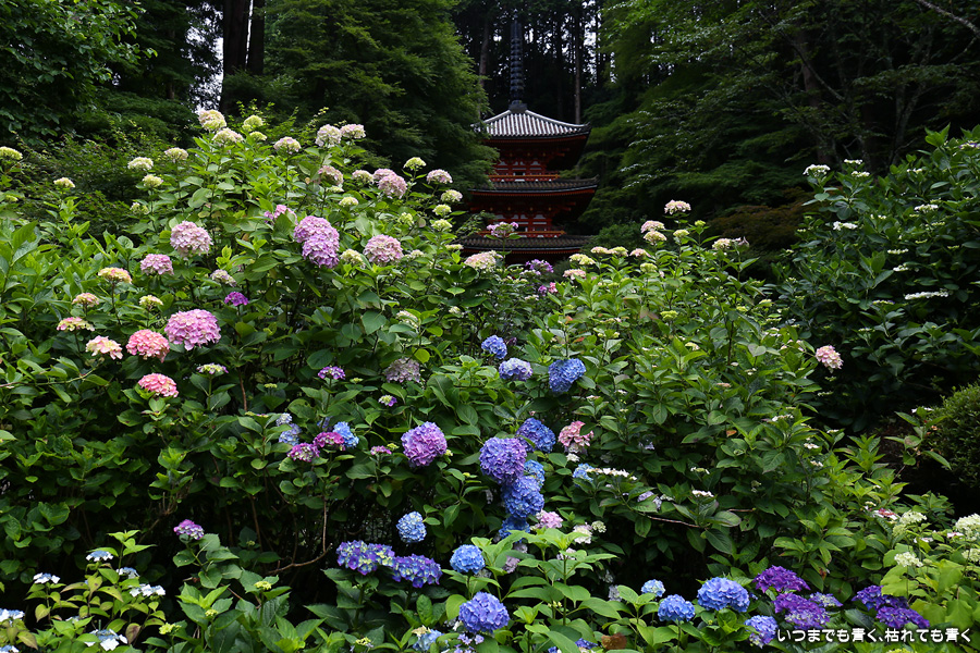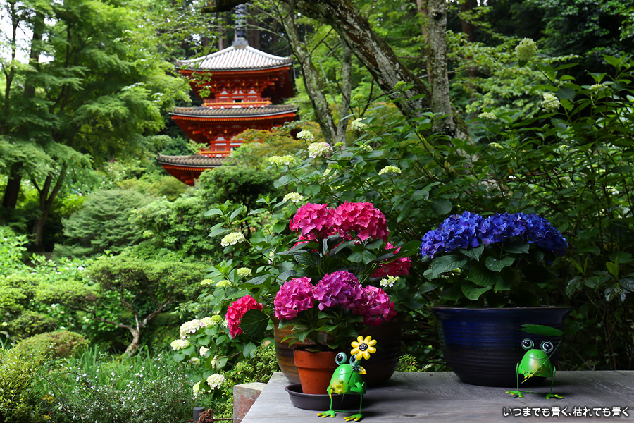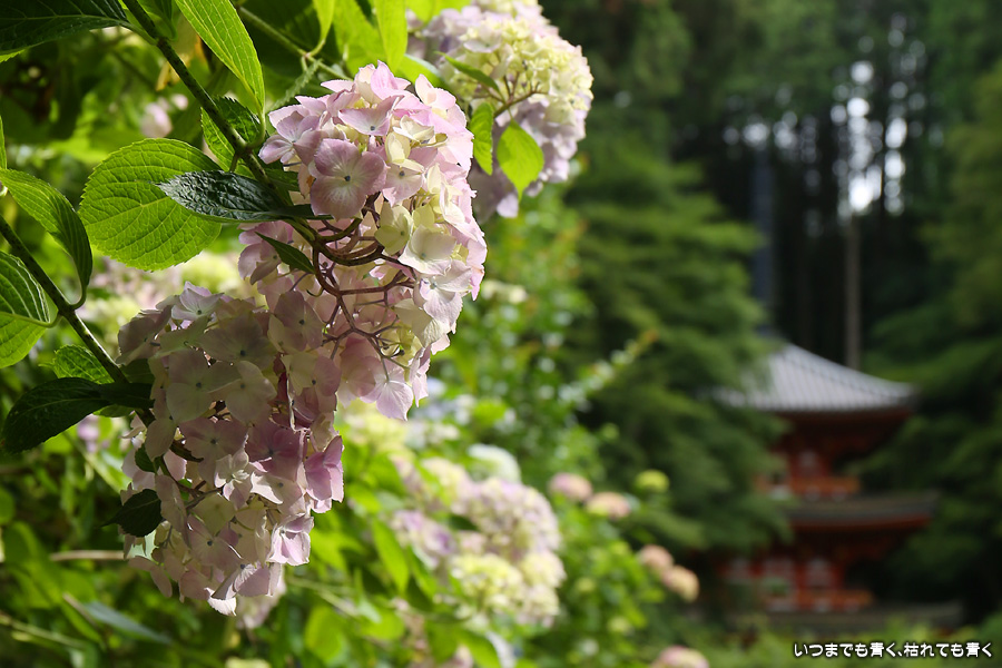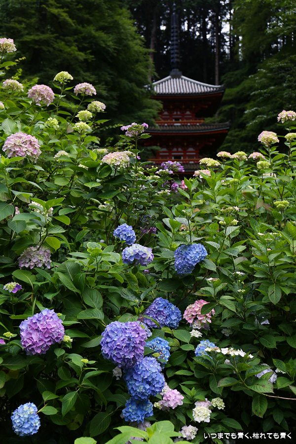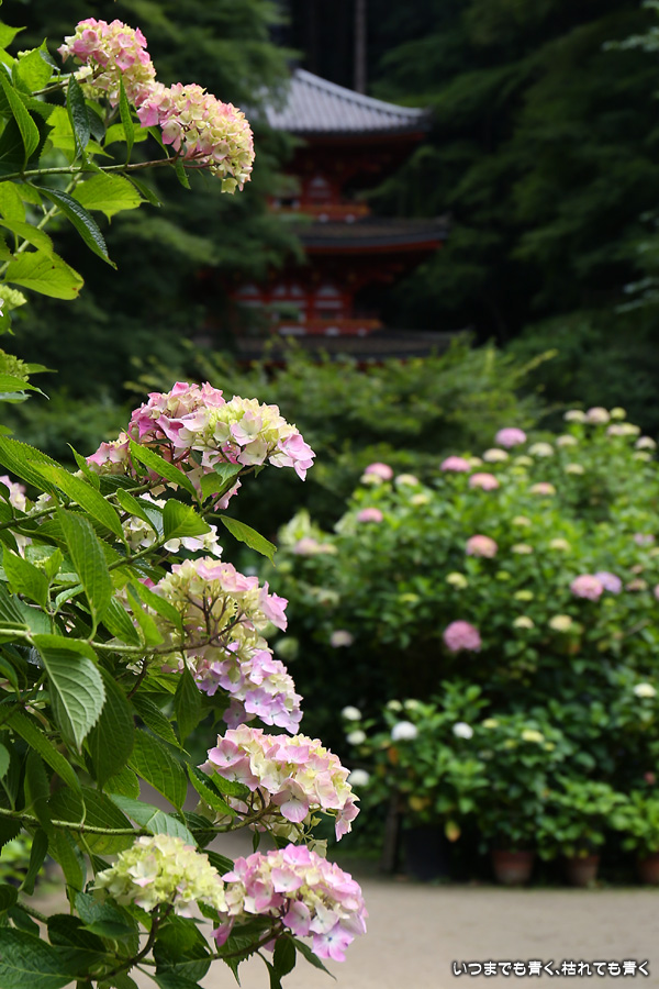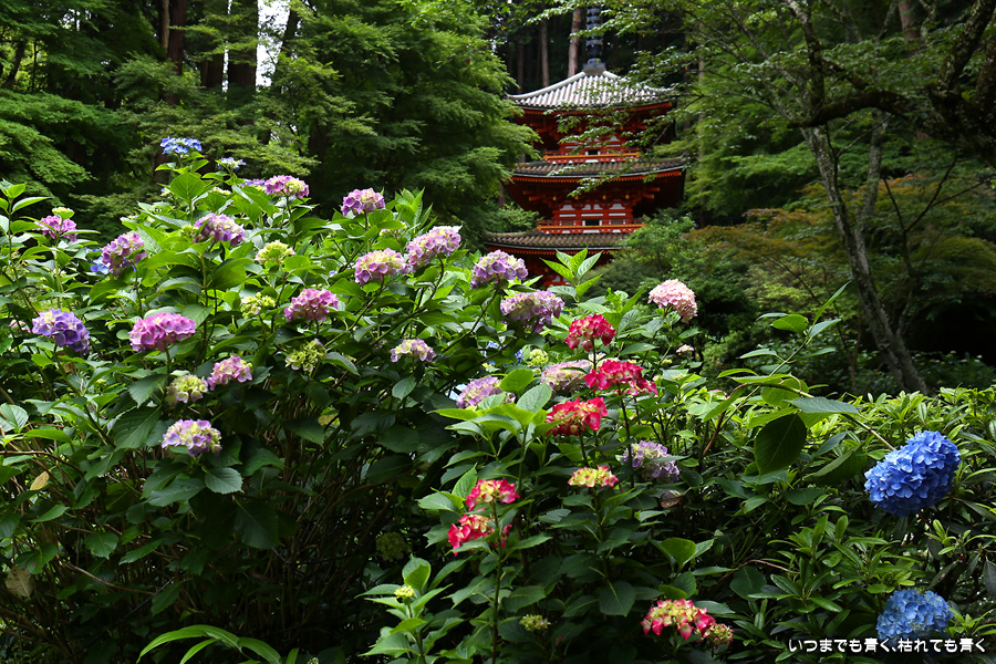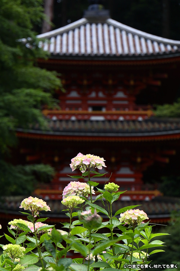岩船寺は5年ぶりになります。毎年訪れたいとは思っているのですが、場所がちょっと中途半端なところ(奈良市には近いのですが)なので行くにはちょっと構えてしまいます。岩船寺の境内は広くはないのですが、三重塔と紫陽花のコラボ写真が撮れることで有名です。今回は時間が押してしまっていて40分くらいの滞在時間しか取れず、ゆっくりと写真を撮っている時間がなかったのが残念でした。紫陽花はまだ色がついていないものや小さいものも目立ち、時期的にはもう少しあとの方が良かったのかも知れません。