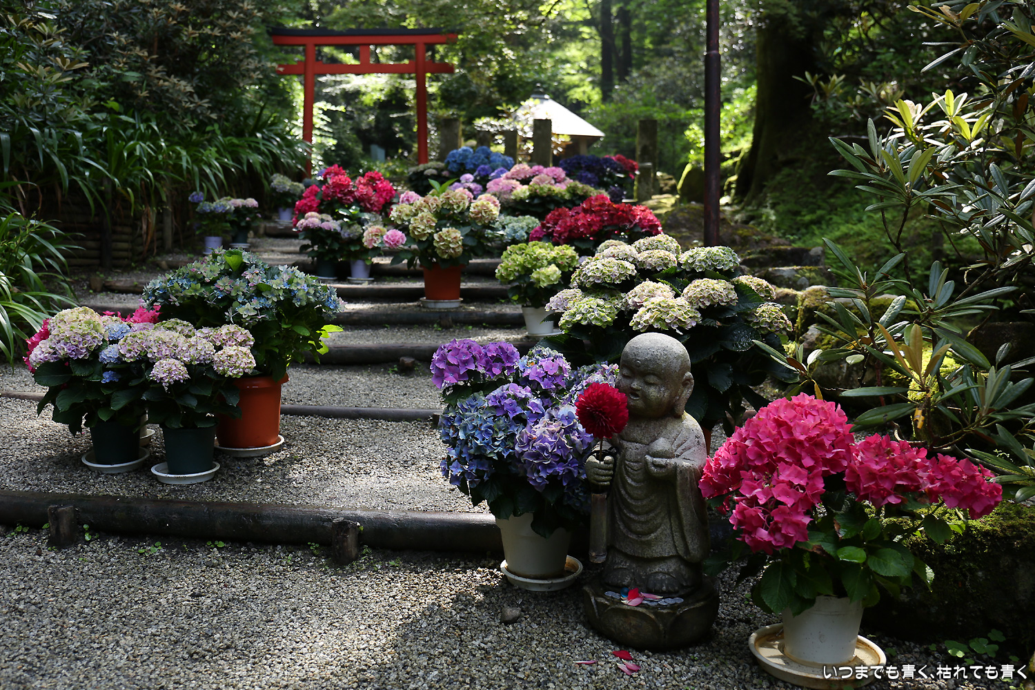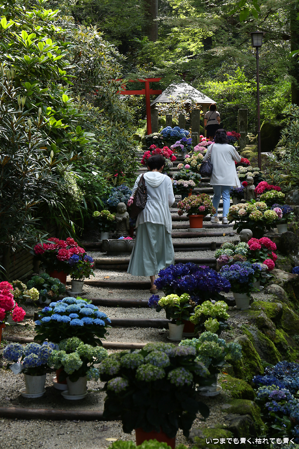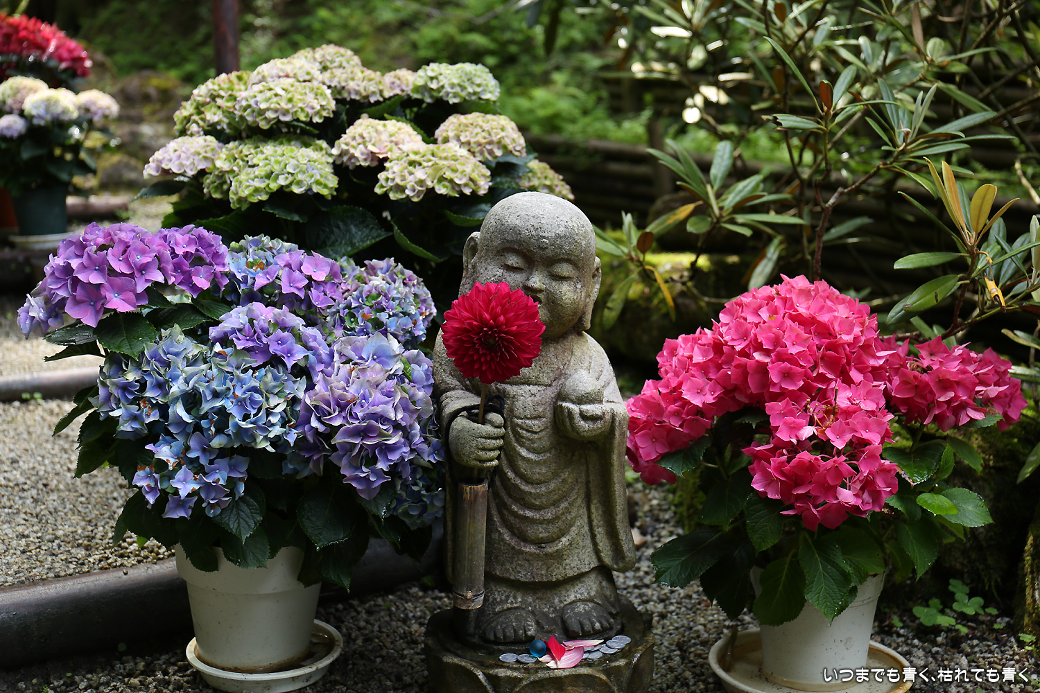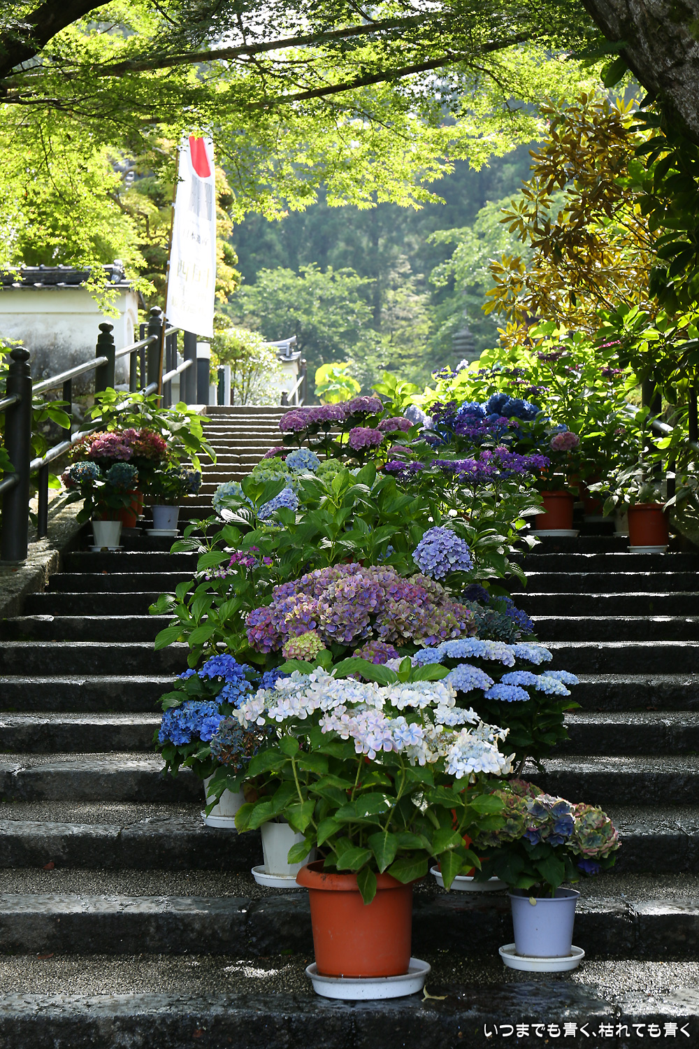 岡寺は石楠花の時期に来たことがありますが、今回は岡寺でおこなわれている大和三大観音「あぢさゐ回廊」を見にやってきました。鉢植えの紫陽花は、すでに変色しているのもあり、鉢植えの数も開催当初よりは少なくなっているのかなと思いました。ただ、訪れる人もまばらで、人のはいらない写真を撮るのは容易で、いろいろとアングルを変えて撮影を楽しみました。似通っている写真もありますが、微妙に変えて撮影しています。来年来る機会があれば、もう少し早めに訪れようと思います。「あぢさゐ回廊」の切り絵の御朱印は手に入れましたが、大和三大観音の御朱印を貼る台紙はすでに売り切れでした。なお、岡寺は紫陽花だけではなく、天竺牡丹(ダリア)も有名で、紫陽花と一緒に手水舎や鉢に浮かべられていて美しかったです。