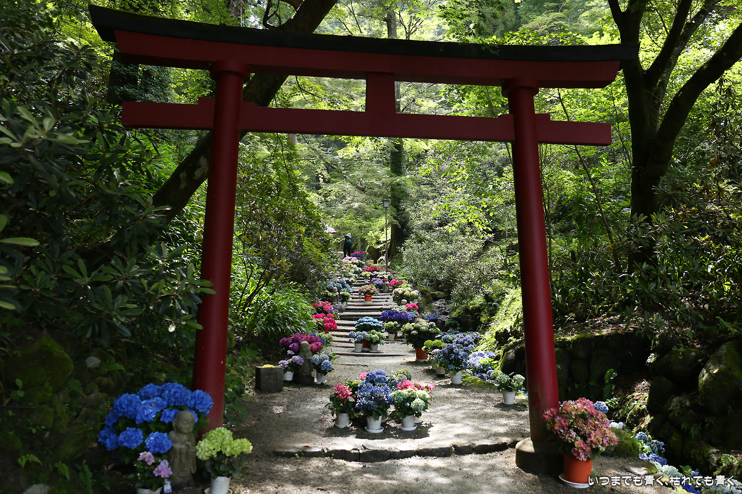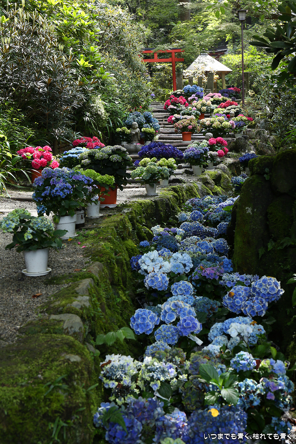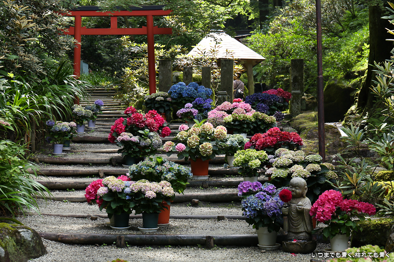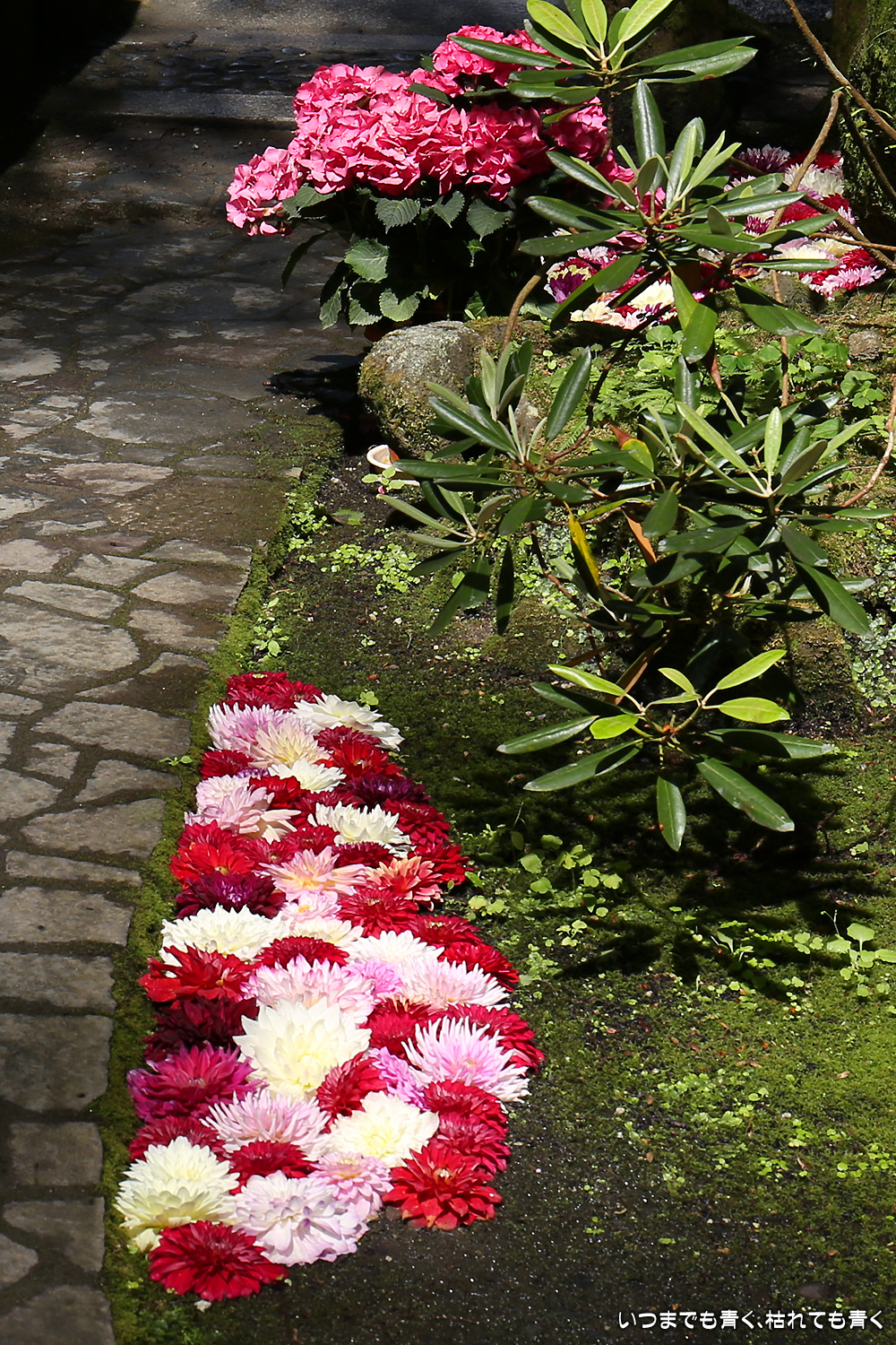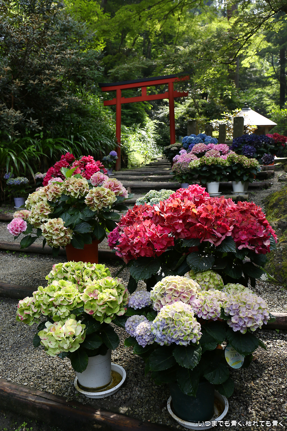 岡寺は石楠花の時期に来たことがありますが、今回は岡寺でおこなわれている大和三大観音「あぢさゐ回廊」を見にやってきました。鉢植えの紫陽花は、すでに変色しているのもあり、鉢植えの数も開催当初よりは少なくなっているのかなと思いました。ただ、訪れる人もまばらで、人のはいらない写真を撮るのは容易で、いろいろとアングルを変えて撮影を楽しみました。似通っている写真もありますが、微妙に変えて撮影しています。来年来る機会があれば、もう少し早めに訪れようと思います。「あぢさゐ回廊」の切り絵の御朱印は手に入れましたが、大和三大観音の御朱印を貼る台紙はすでに売り切れでした。なお、岡寺は紫陽花だけではなく、天竺牡丹(ダリア)も有名で、紫陽花と一緒に手水舎や鉢に浮かべられていて美しかったです。