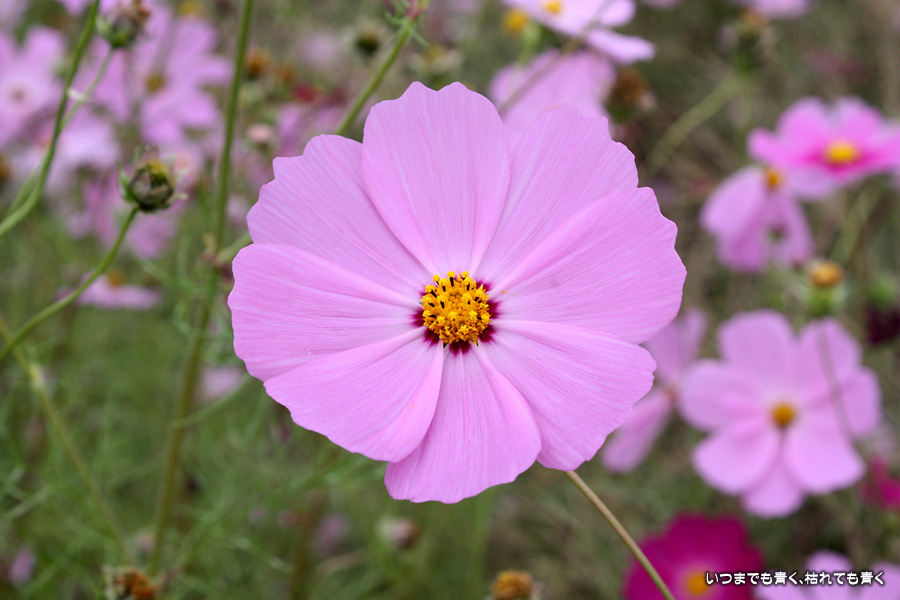 今日、カメラを片手に近くのコスモス畑2ヶ所に行ってきました。たまに小さな子供連れの家族がやってきて、コスモスをバックに写真を撮ったりしています。私も頼まれて写真を撮ってあげました。あらためてコスモスの花をよく見ると、色だけではなく形も微妙に違っていているのですね。コスモスという花にあまり興味もなく、漠然とコスモスをいう花をとらえていたように思います。コスモスをこんなにじっくりと見たのは、生まれて初めてかも知れません。四季の花をこうして楽しんで季節を感じながら時を過ごす楽しみ。老け込むのは嫌ですが、こういう楽しみを感じる事ができるようになったのは、やはり年齢なのでしょうね。そのうちに、あと何回見ることができるかなぁ、なんて思うのでしょうかね・・・。