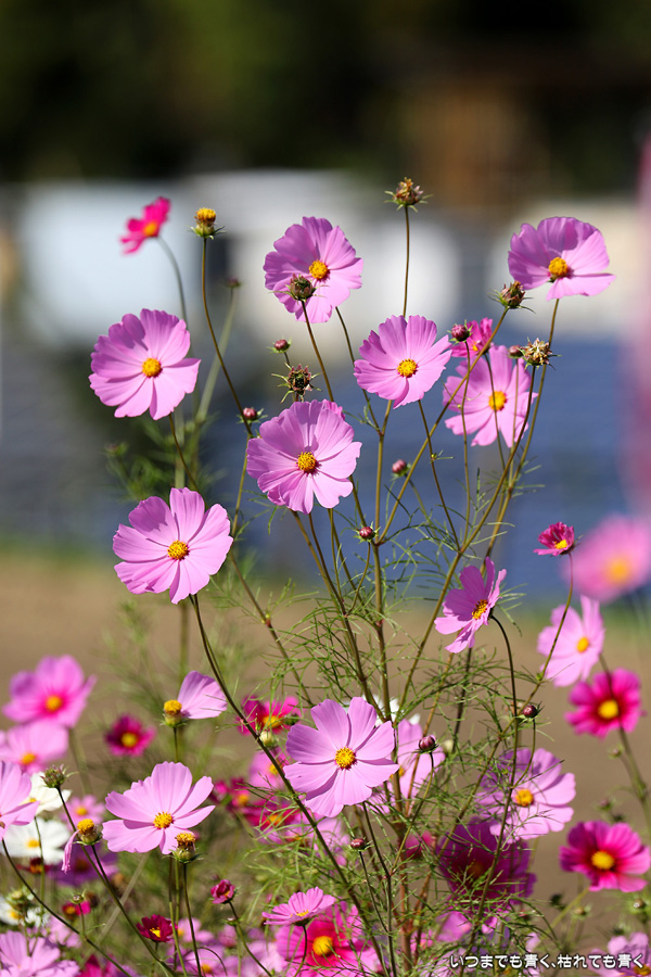 2018年10月28日に撮影した、愛知県岡崎市・奥殿陣屋のコスモスの写真です。