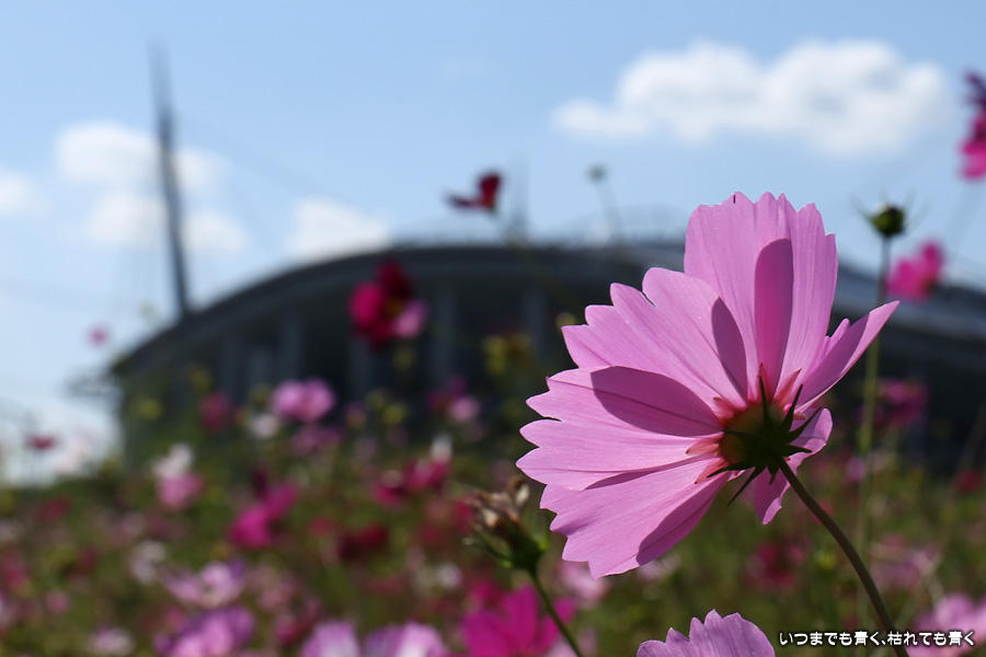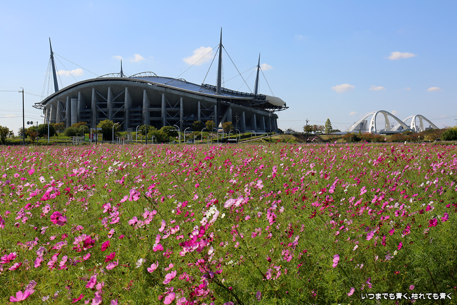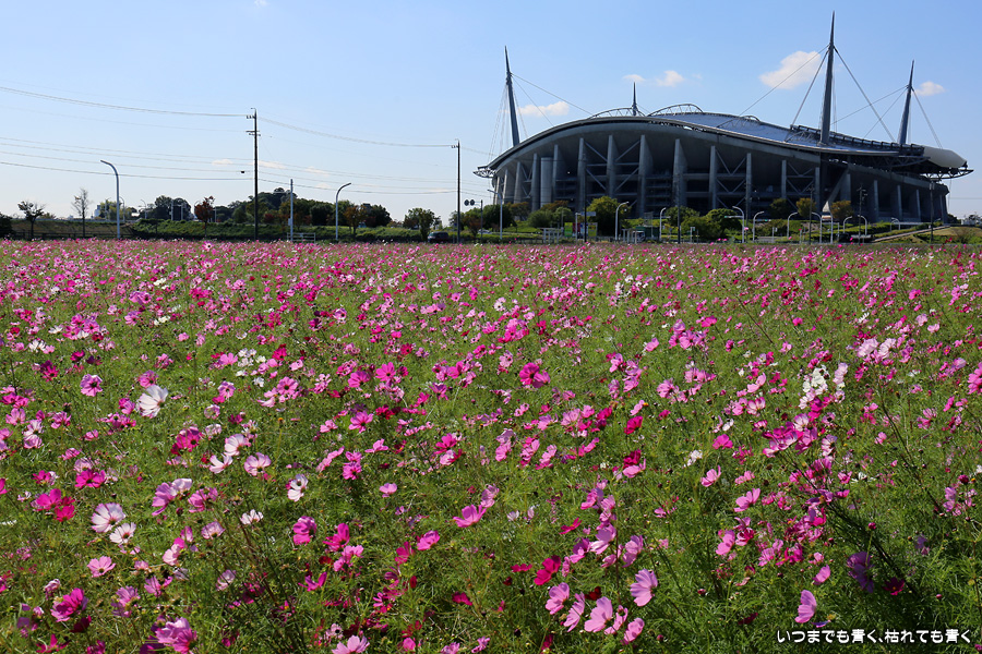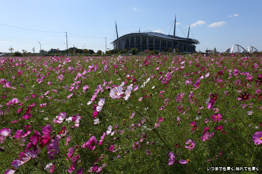 2023年10月17日(火)に撮影した、愛知県豊田市・豊田スタジアム周辺のコスモスの写真です。
