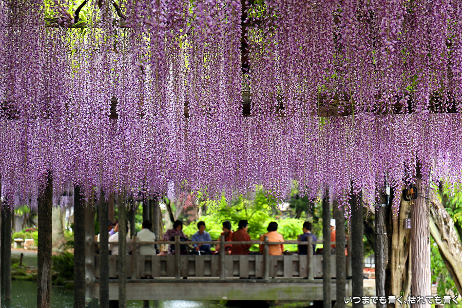2018年4月20日に撮影した、愛知・津島の天王川公園で開催されている「尾張津島藤まつり」の藤の写真です。