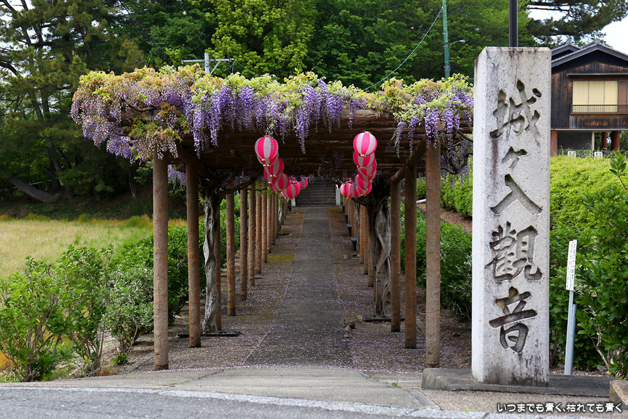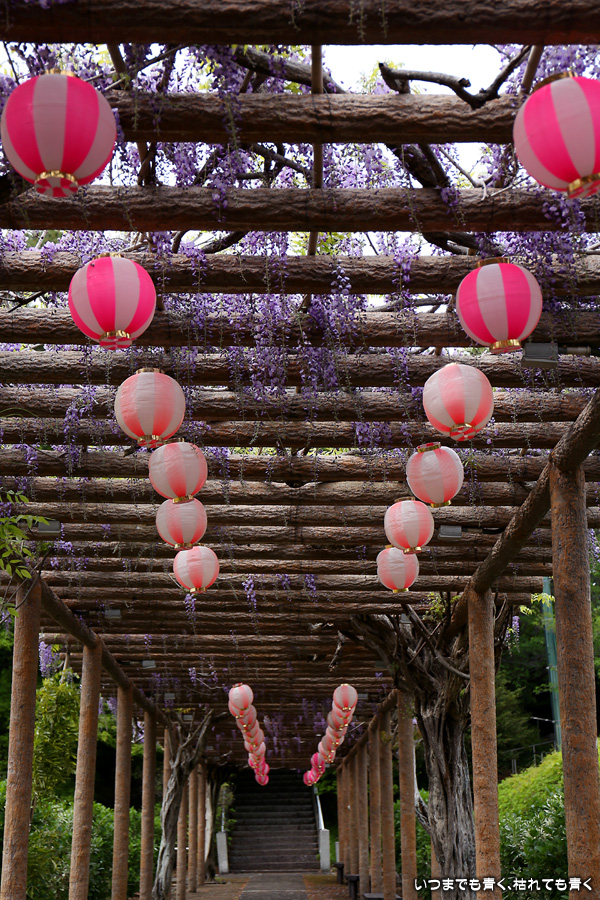 城藤園も近場の行っていない藤の名所を探して見つけたところです。城藤園という名称ですが、城ヶ入子安観音の参道の100mほどの藤棚のことのようです。提灯が下げてありましたので、藤まつりのイベントがあるのかもしれません。藤の花は長さが短くて藤棚から垂れ下がる状態ではないにもかかわらずすでに落ちた花も多くて、気候のせいなのかも知れません。ちょっと残念な状況でした。