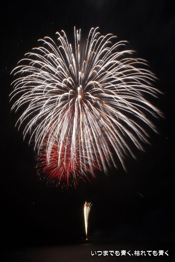 今年は昨年とは違って打ち上げ場所からかなり離れたところの海岸でタクシーを降ろされてしまい、海岸線をかなり歩く羽目になりました。それでも打ち上げ場所にあまり近づくことはできず、しかも湿気のある風が強く吹いていて、三脚は揺れるしレンズがすぐにベトベトになってしまうしで、まともに見ることができる写真はほんの一部しかありませんでした。特に風の影響は、花火の形もゆがめてしまいますし、微妙なカメラの揺れが花火の軌跡をミミズがはった跡のように乱します。なので掲載するのを迷っていたのですが、昨年の「サザンビーチちがさき花火大会」の写真よりは進歩はありそうかもと思い直して記録の意味も兼ねて掲載しておくことにしました。