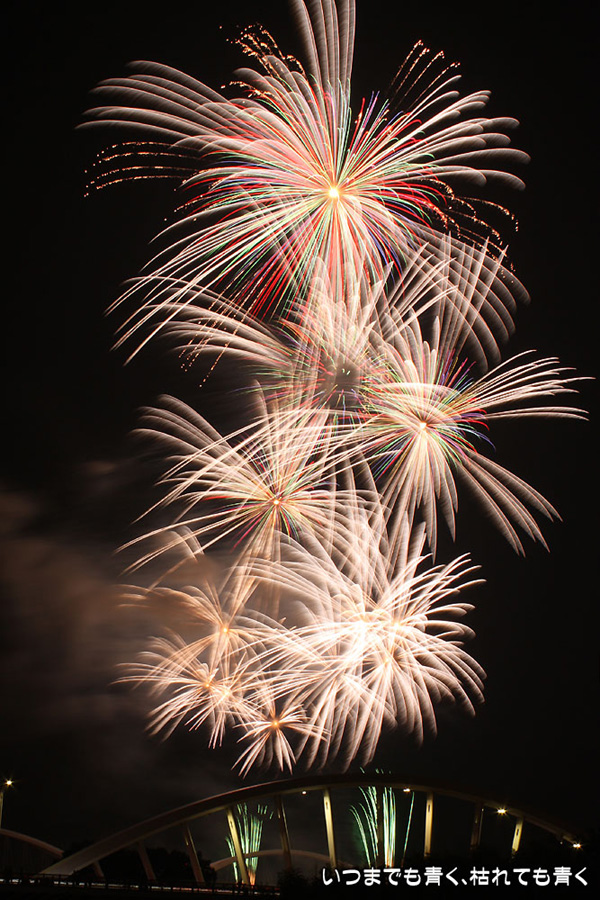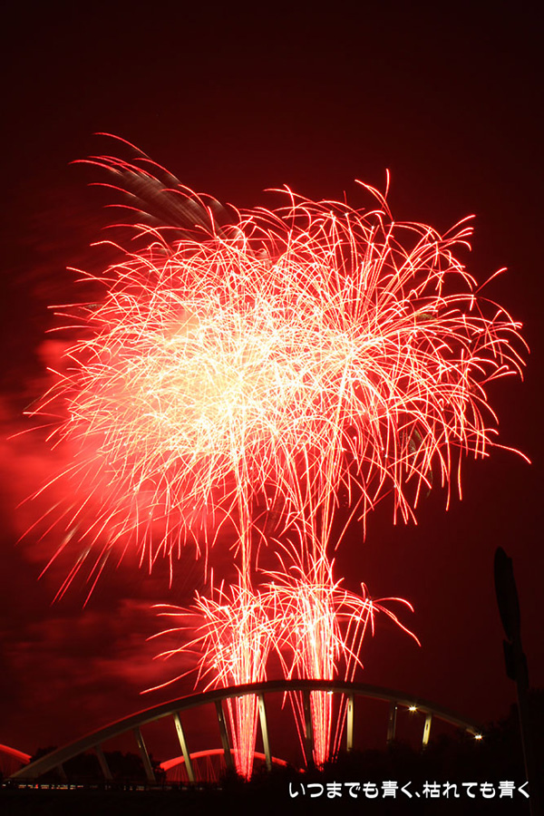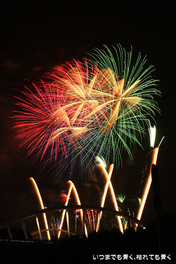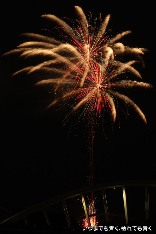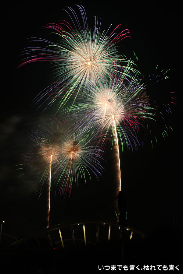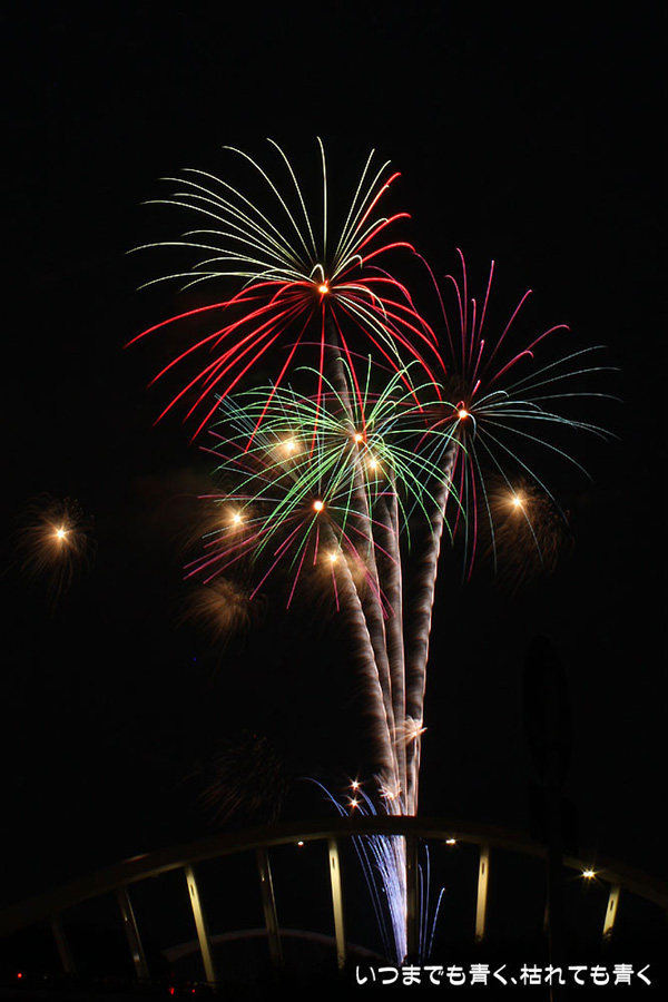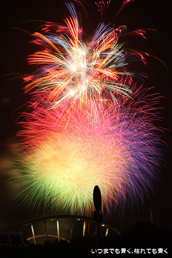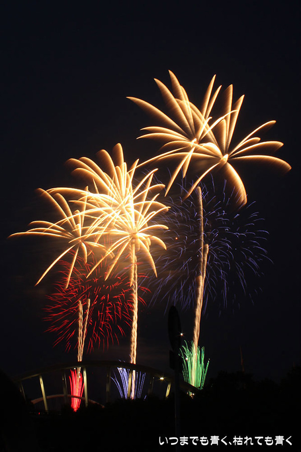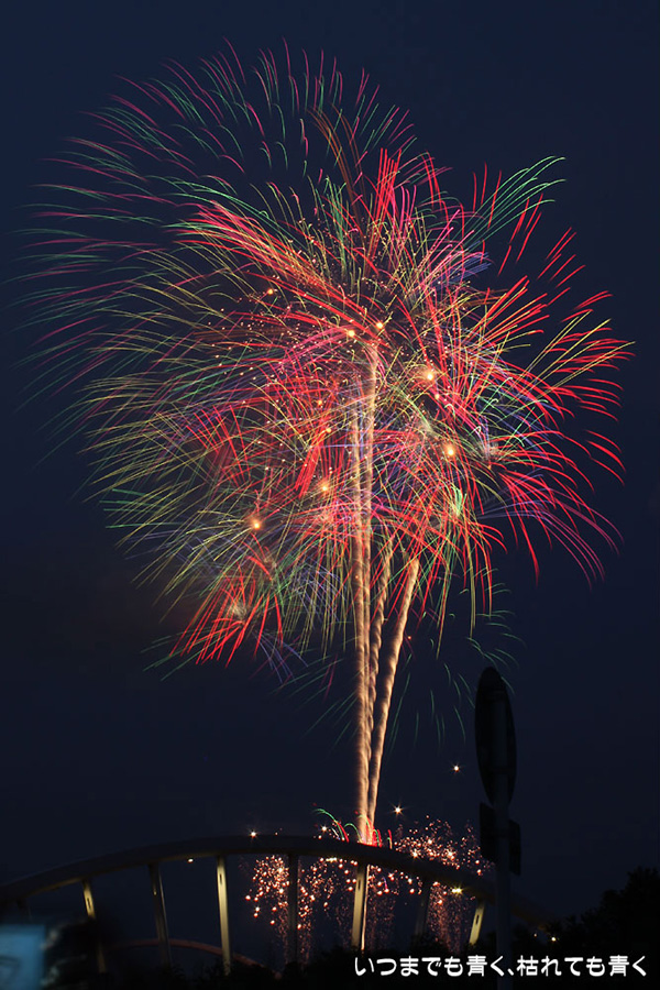 今年は奥さんと長女の都合が悪かったので、久しぶりに末娘とふたりでの見物です。私はカメラと三脚を持っていき花火見物というより花火撮影です。始まる30分くらい前に現地に行ったので、思うような場所が確保できず、レンズの先に道路交通標識がある場所となってしまいました。でも、写真撮影も気楽に楽しむのが信条なので、あまり細かくこだわらずに記念に残せればという感じで撮影しました。花火撮影にも慣れてきたのか、年々シャープな写真を撮れるようになってきたかなと思いますが、花火を見ながら写真の出来上がりを予測してシャッターを切る時間を考えるのは相変わらず難しいです。写真を撮りながら花火を楽しんでいると、2時間なんてあっという間でした。すでに相当暑い日が続いていますが、これで夏本番です。