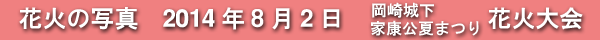2014年8月2日に開催された、愛知・岡崎の「岡崎城下家康公夏まつり花火大会」の花火の写真です。
