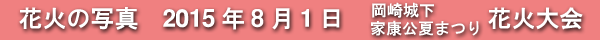 2015年8月1日に開催された、愛知・岡崎の「岡崎城下家康公夏まつり花火大会」の花火の写真です。