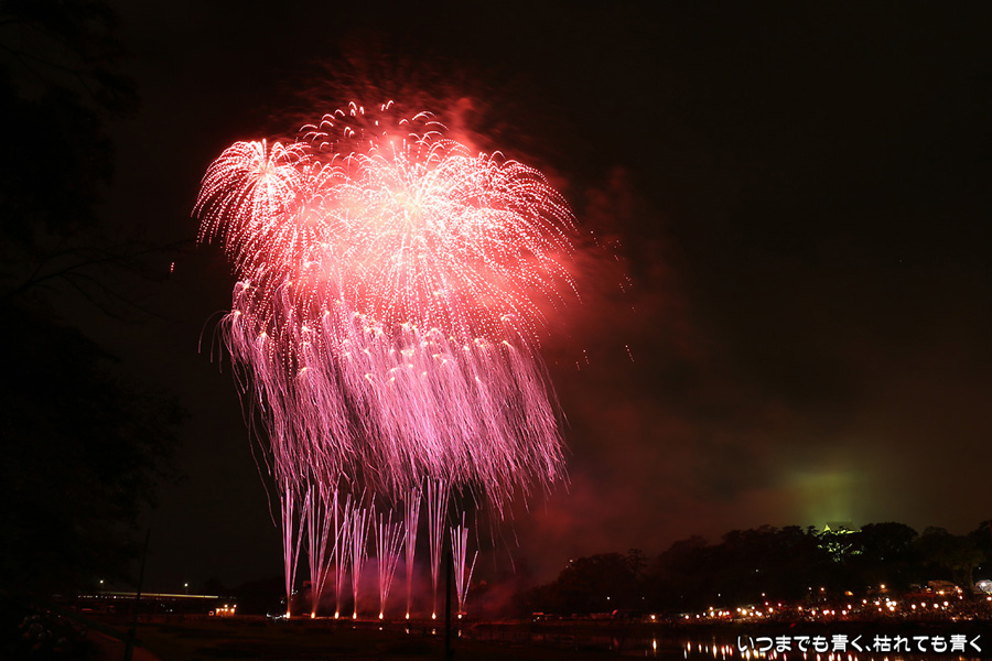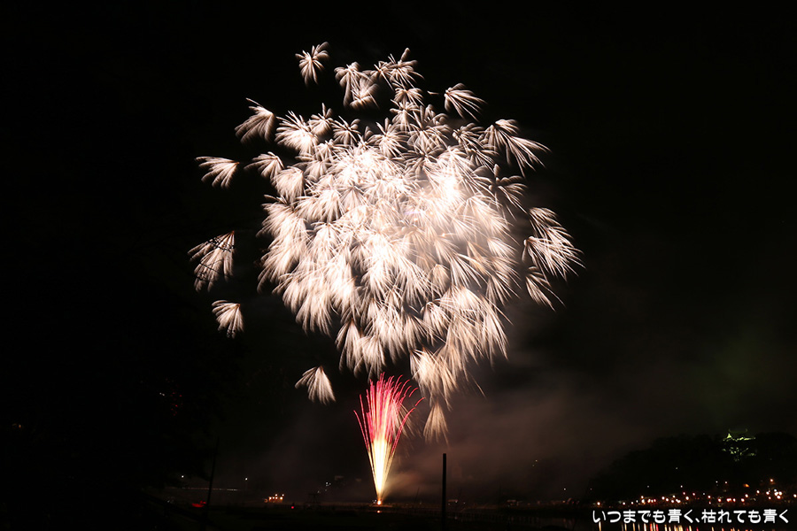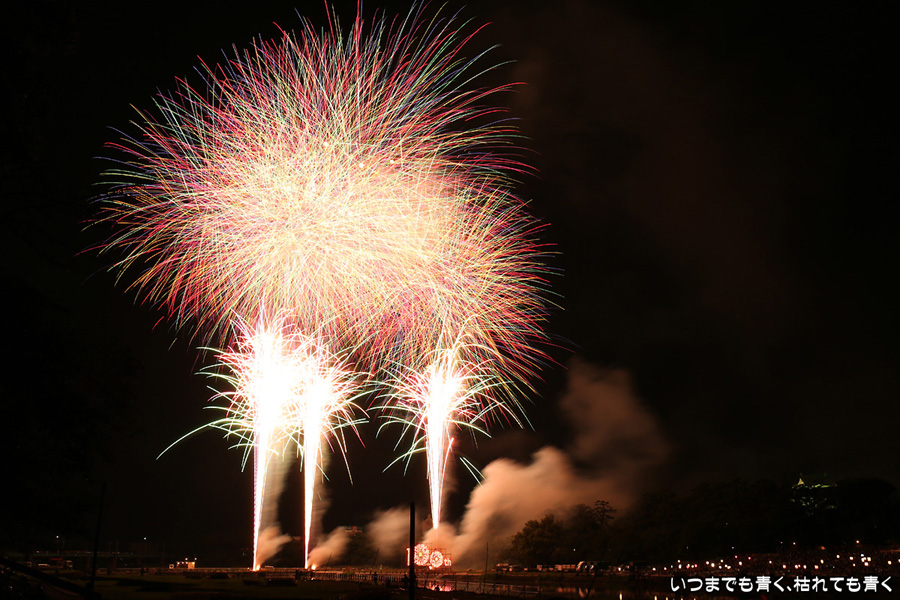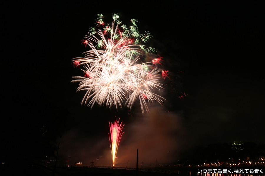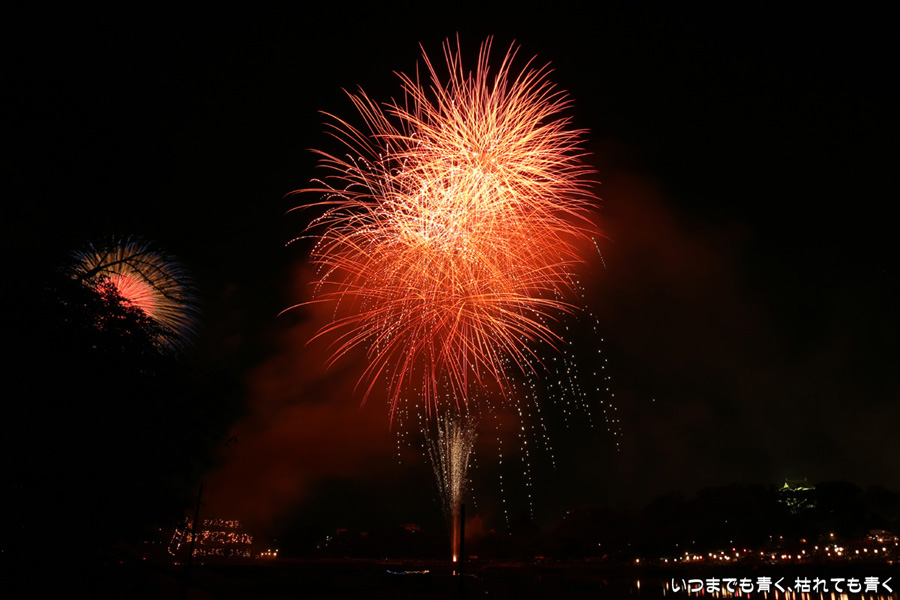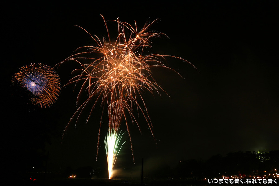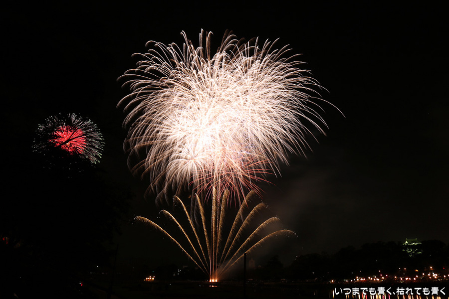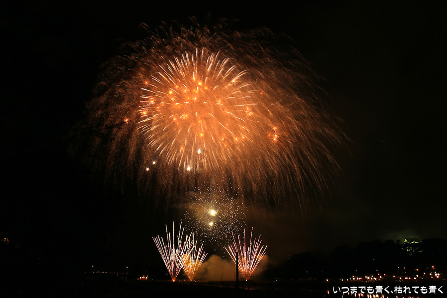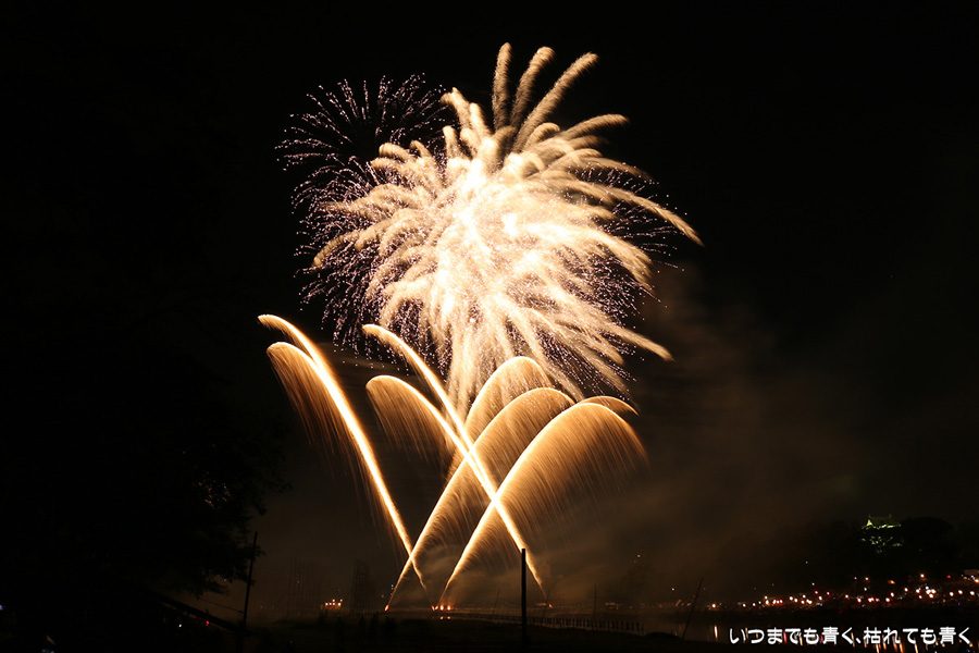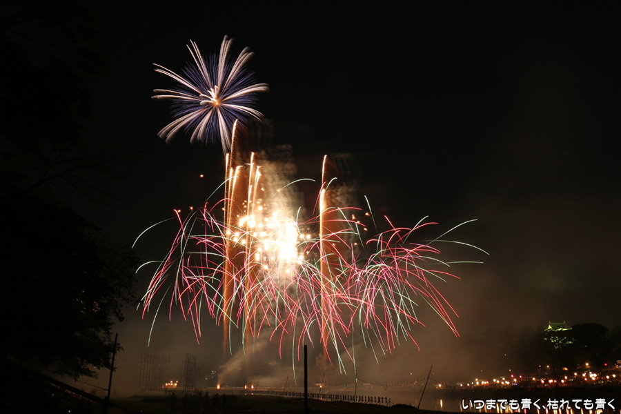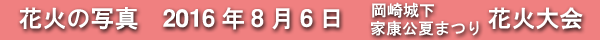 2016年8月6日に開催された、愛知・岡崎の「岡崎城下家康公夏まつり花火大会」の花火の写真です。