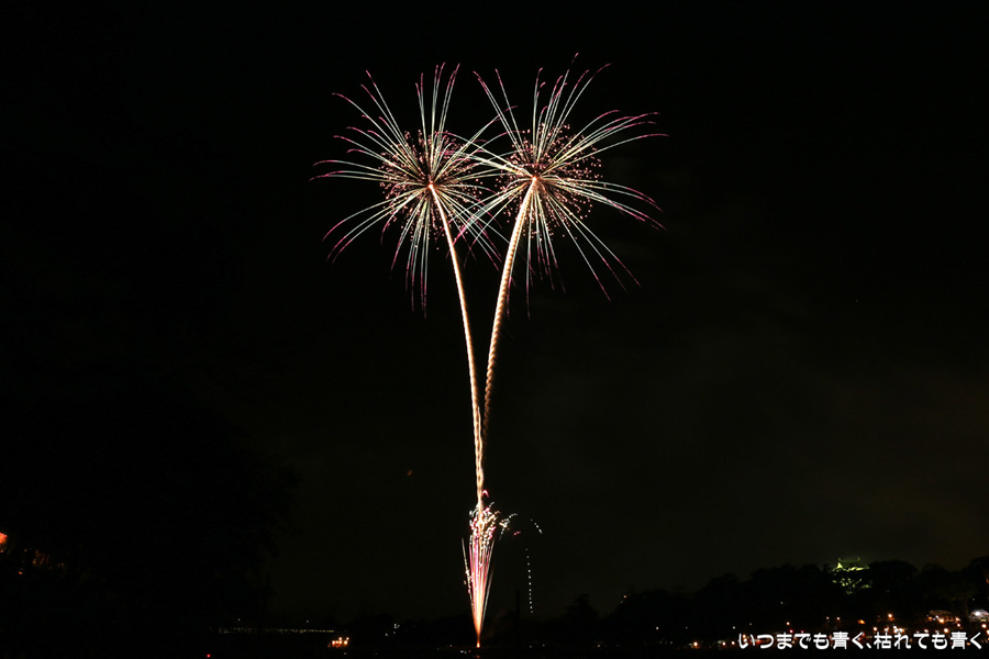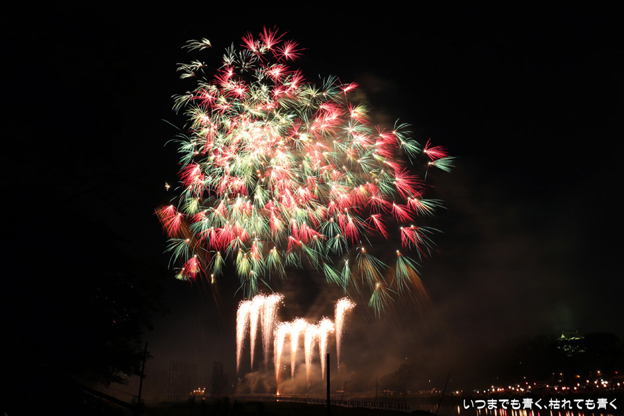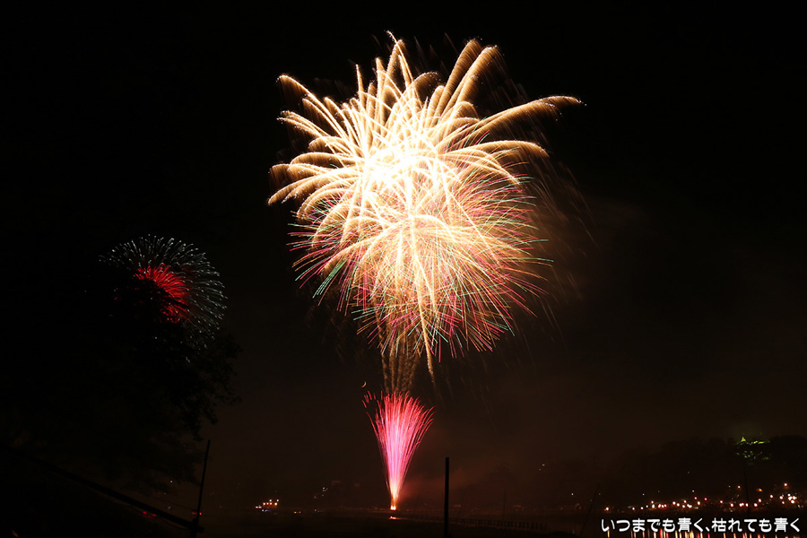 にあげました。花火鑑賞だけでなく、写真撮影趣味のおじさんたちとも話をしたりして本当に楽しいひとときでした。また来年も同じ場所で会いましょうと約束して別れましたが、病気が治り来年も行くことができればいいのですけどね。