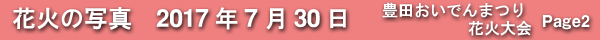 2017年7月30日に開催された、愛知・豊田の「豊田おいでんまつり花火大会」の花火の写真です。