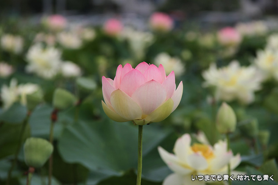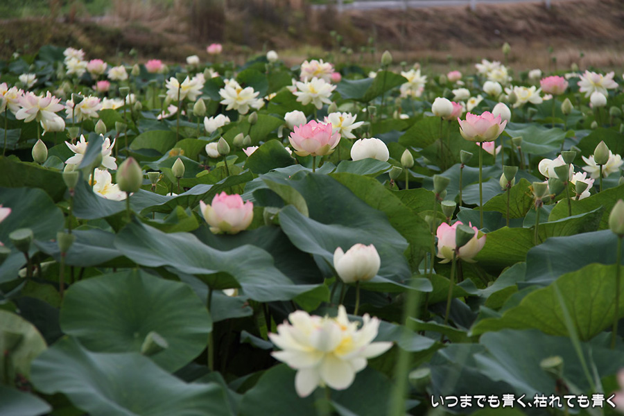 家から車で10分ほどの場所にある蓮田です。昨年は7月22日に見に行って見頃が過ぎていましたので、今年は早めに見に行こうと思って、今日の昼前に行ってきました。すでに花托だけになっているものもありましたが、まだまだ数多く咲いていて、ここしばらくは見頃の時期が続きそうです。