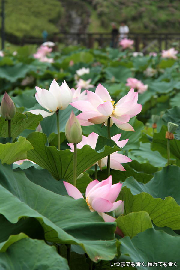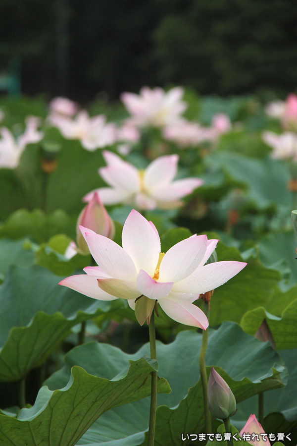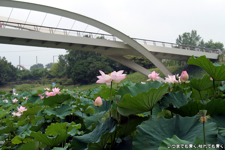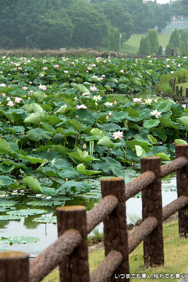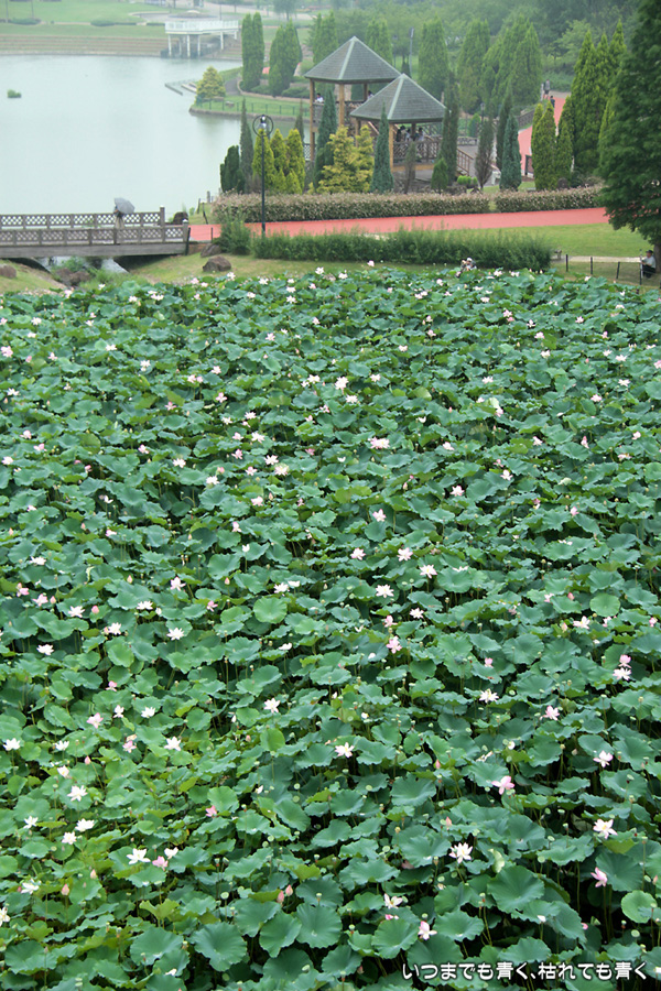 自宅から20kmほどのところにある「あいち健康の森公園」の蓮の花を見に行ってきました。「あいち健康の森公園」は初めてですが、いろんな花が楽しめる公園のようです。蓮は朝が勝負!ということでせっかく早起きして出かけたのに、着いたら本降りの雨。どうなることかと思いましたが、蓮を見ていた2時間ほどだけ運よく雨がやみ、なんとか雨を気にせずに楽しむことができました。時期的にはやや遅かったという感じでしたが、淡いピンクの花がとても美しかったです。