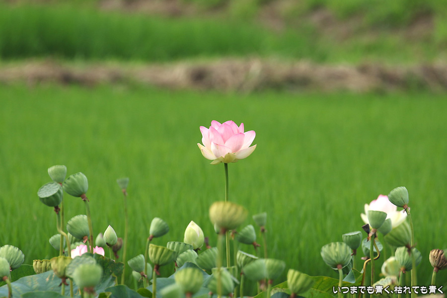 7月に入ったので蓮が見頃かなぁと思って、家から車で10分もかからないところにある竹村の蓮田に行ってきました。しかし、ここの蓮は他の場所よりも咲くのが早いということをすっかり忘れていました。ほとんどが花が散ったあとの花托でした。