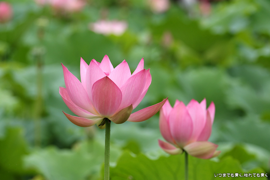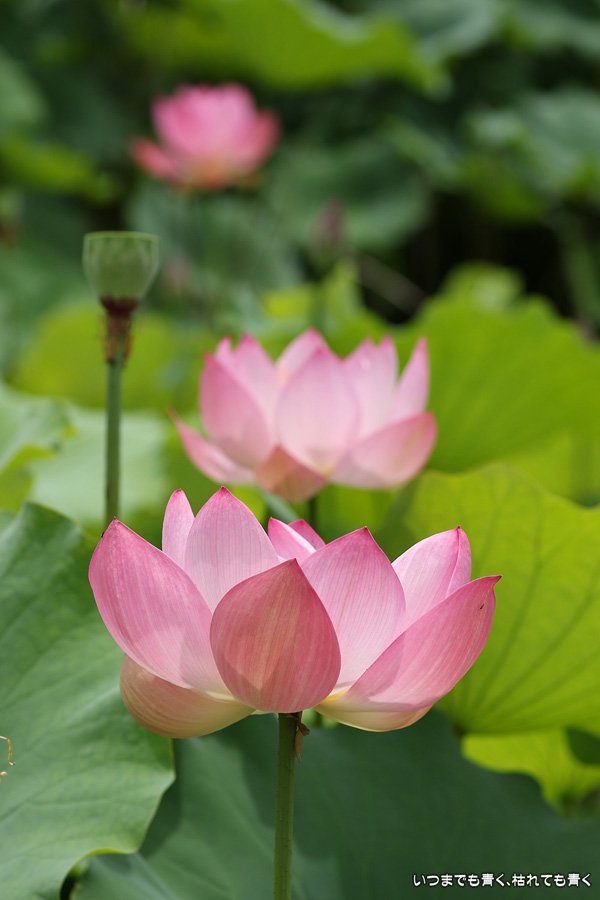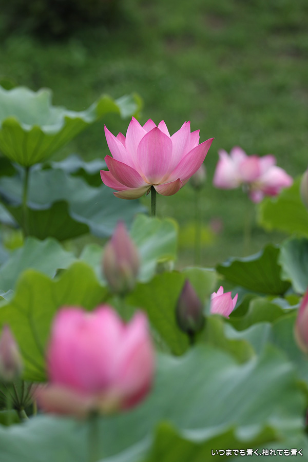 最後に訪れた2017年は八橋遊歩道の老朽化で中に入ることができませんでしたが、久しぶりに訪れてみると八橋遊歩道も新しく整備されいて、蓮の花も美しい花をたくさん咲かせてくれていました。ここの蓮の花は一重のピンクの花ばかりです。
