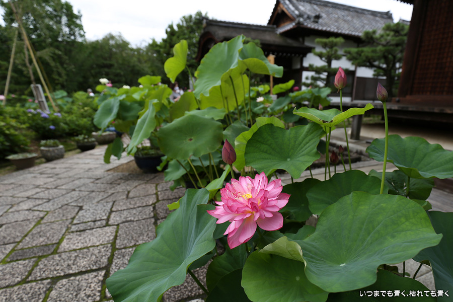 法金剛院は10年ぶりの拝観となります。雰囲気の好きなお寺なのですが、紫陽花と蓮の花の時期を逃すとなかなか訪れることがありません。今年は完全予約制で午前だけの限定拝観となっています。鉢植えの蓮の花はきれいに咲いていますが、蓮池は一面緑で花はほとんどありませんでした。