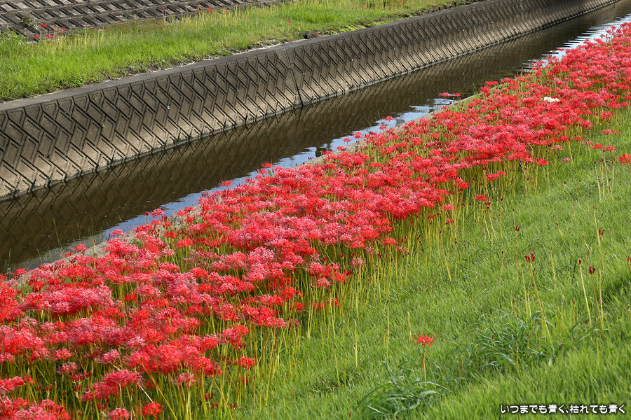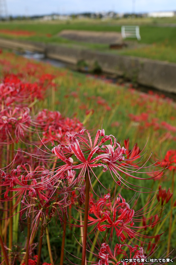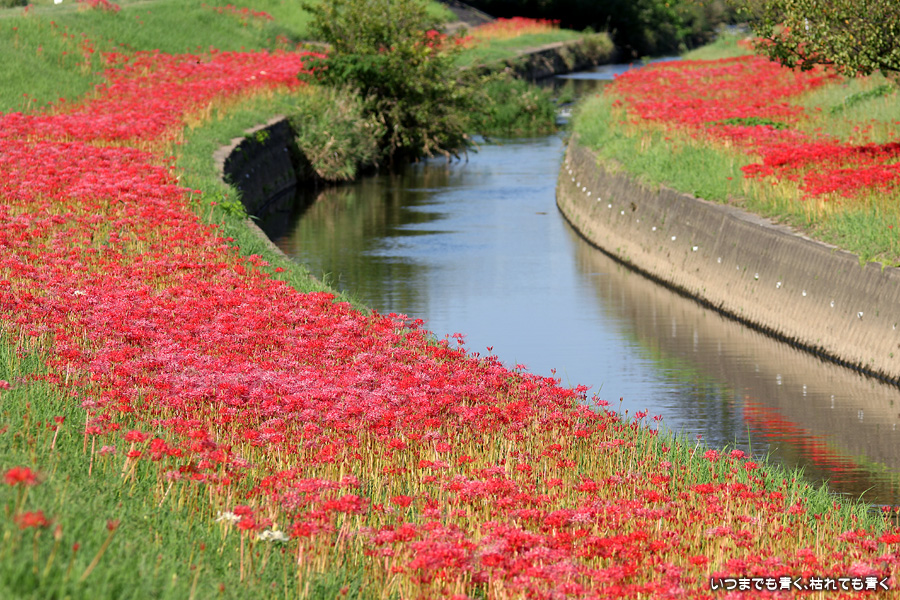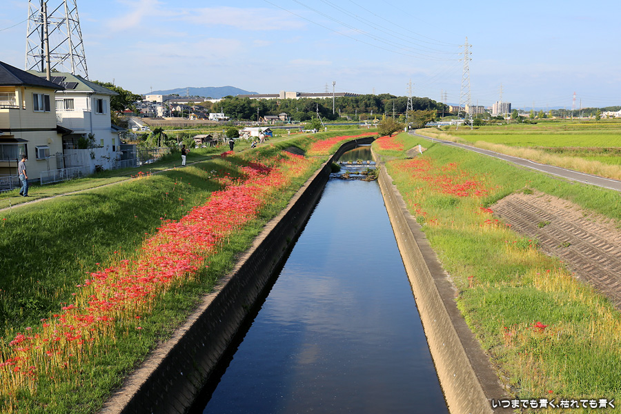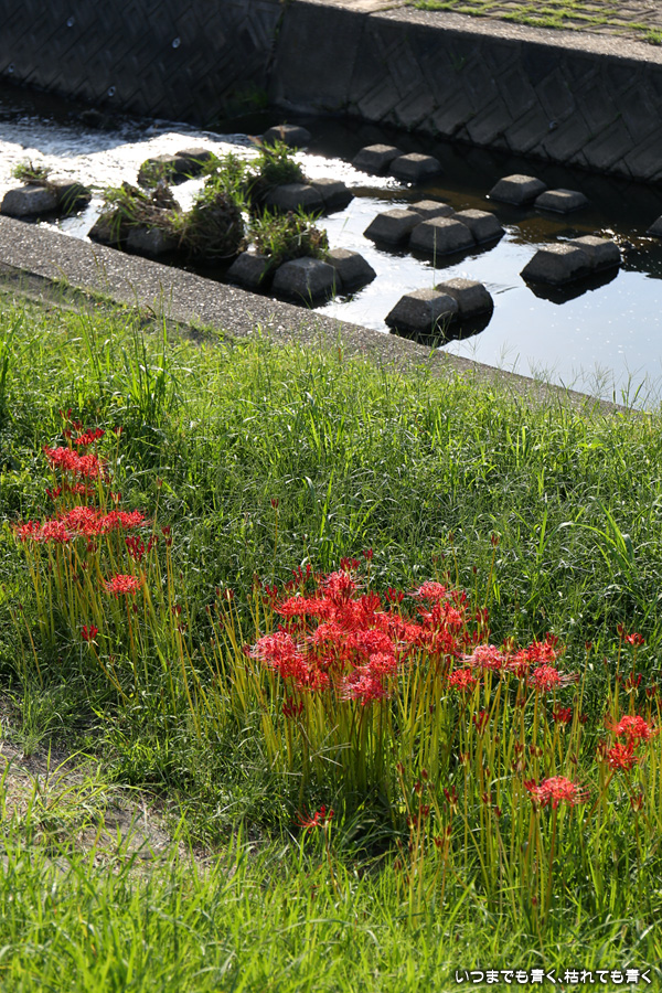 2023年9月25日(月)に撮影した、愛知県豊田市・逢妻女川の彼岸花の写真です。