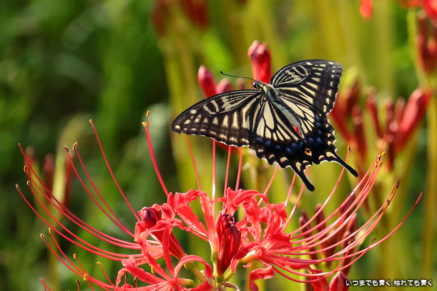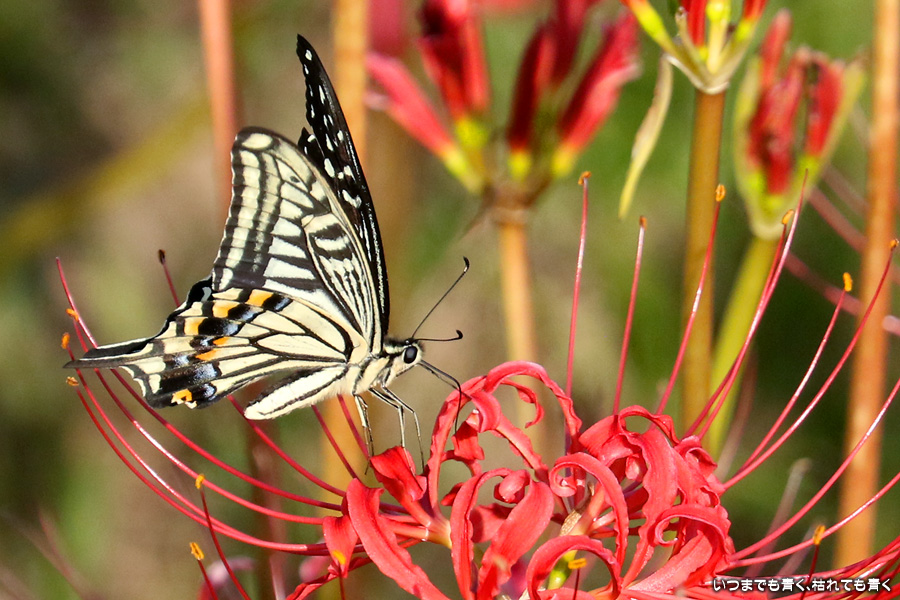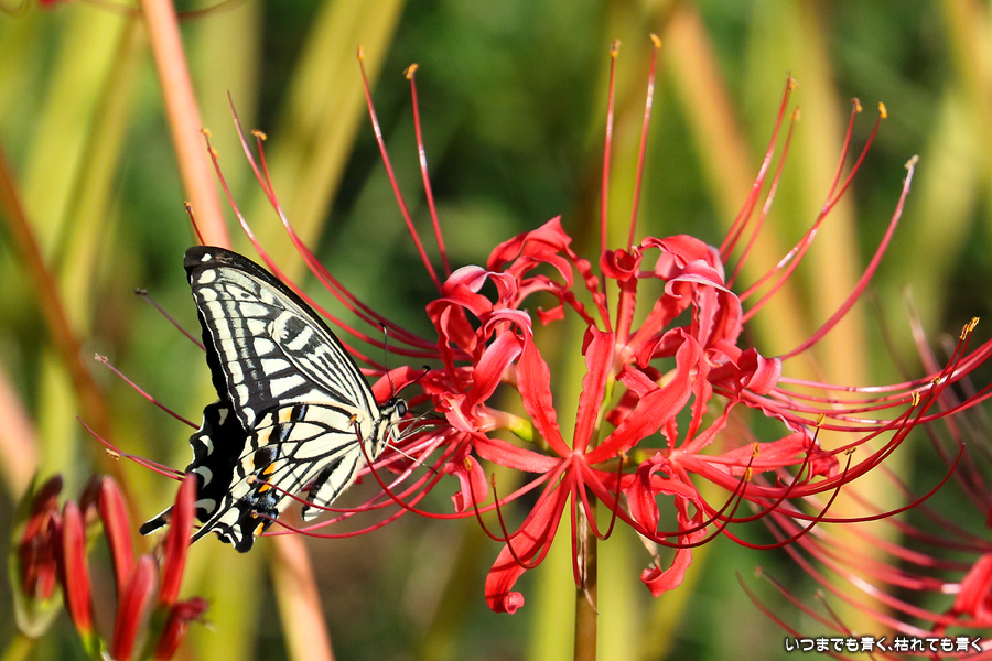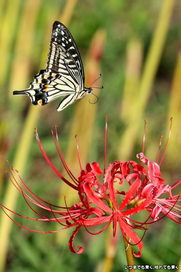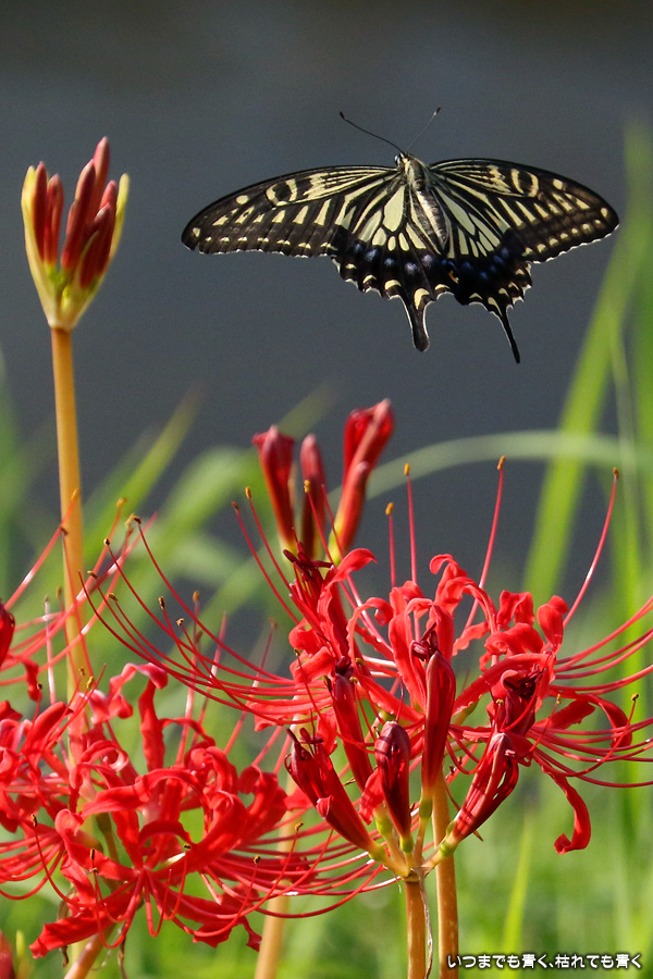 彼岸花は寂しい状況でしたが、アゲハ蝶は花に寄ってきていて、いつものように彼岸花とアゲハ蝶の写真を撮りました。これも彼岸花の撮影の楽しみのひとつです。
