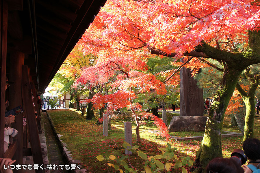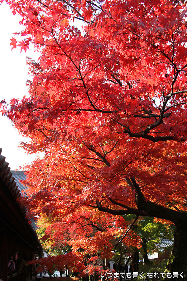冬の京都、春の京都は何度か行きましたが、今年は秋の京都を楽しみたいとずっと思っていました。予定では、来週あたりが紅葉の見頃かなと思っていたのですが、インターネットで東山のモミジは見頃になっていると出ていたので、急遽、家族で出かけてきました。最初の東福寺は、「京の秋、モミジの通天橋」と言われるように、通天橋からの眺めと、通天橋とモミジの構図がとても素晴らしいところです。ここは過去にも何度か訪れたことがありますが、通天橋の拝観券を買うのに長い行列ができているのはこの時期ならではの光景でした。 真っ赤な紅葉の中の通天橋を期待して楽しみにしていたのですが、中に入るとまだ緑の葉も多くてやはり少し早かったようで、少しがっかりというのが正直な感想でした。それと、人がいっぱいで通天橋や下の庭園は歩くのがやっとという感じで、写真を撮るのも一苦労でした。写真は、あまり人をいれないように撮ったので、それほど人が多く感じないかもしれませんが。