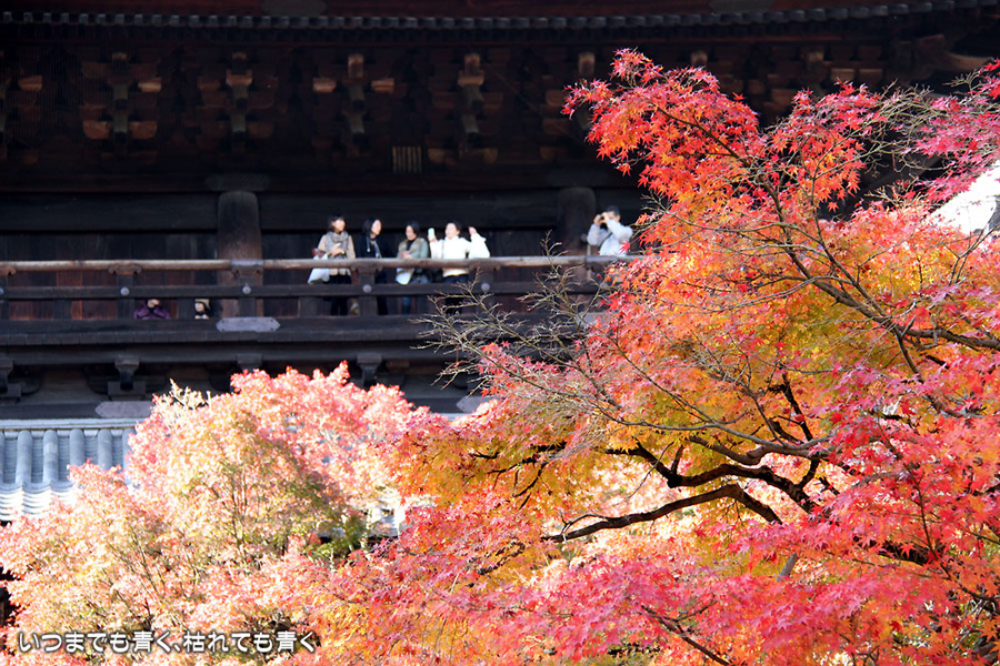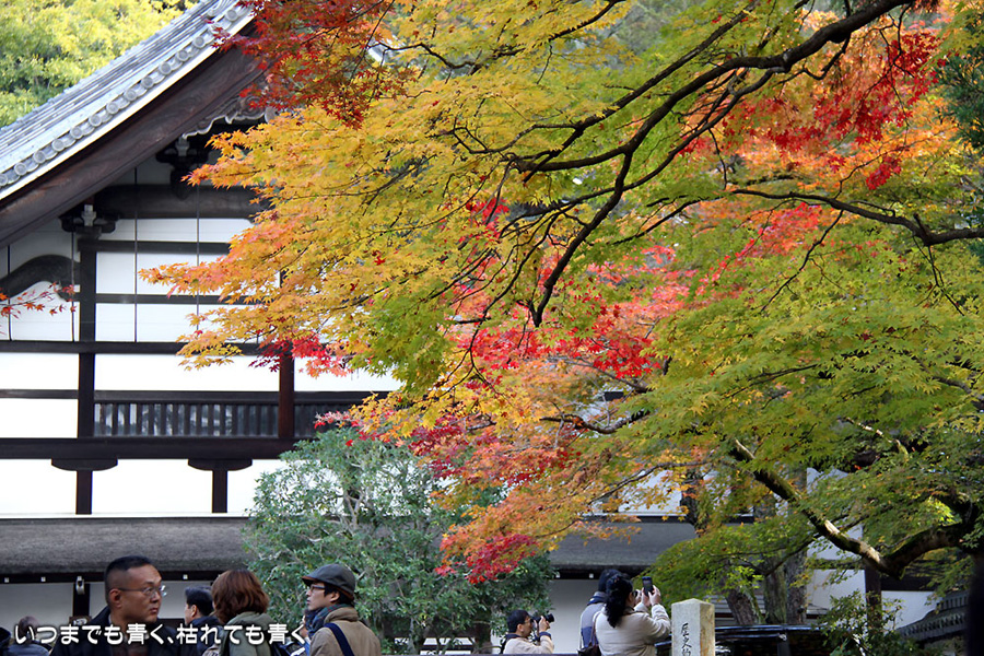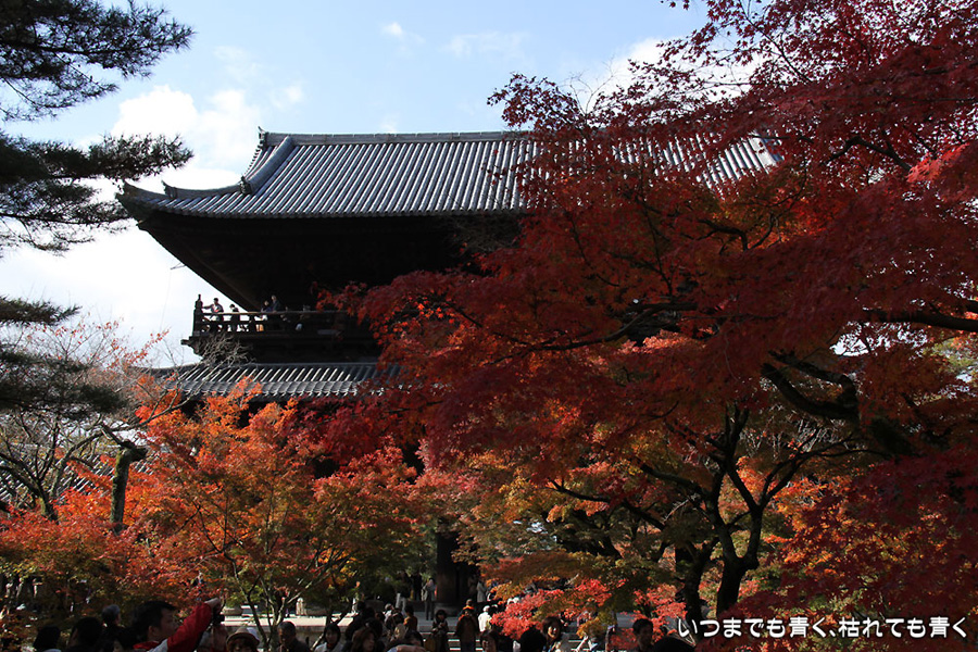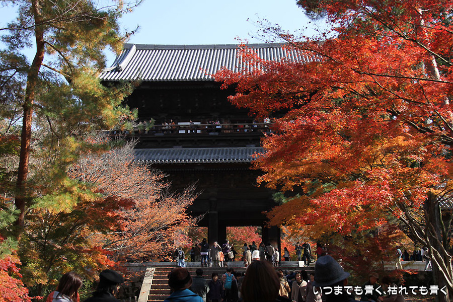 南禅寺も紅葉の定番のお寺です。三門の前後のモミジはきれいな赤やオレンジに色づいていましたが、水路閣の周りはまだ青いモミジが多くて、こちらも少し残念でした。やはり来週のほうが良かったかもしれません。
