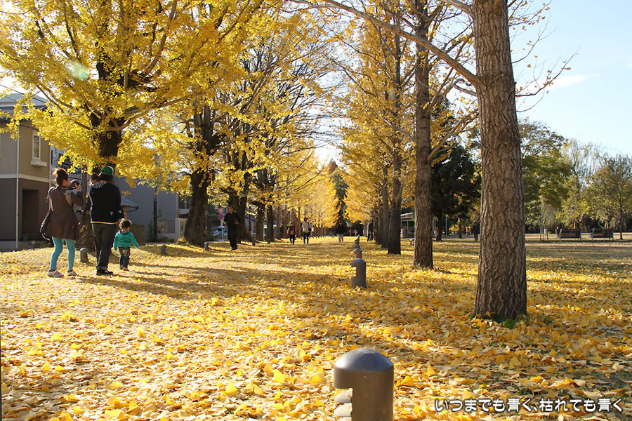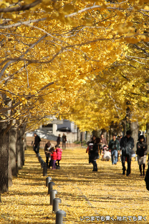 昨年知った岐阜県各務原市の「学びの森」にある、冬ソナストリートに行ってきました。今年は絶対に行こうと思って時期を見計らっていたのですが、すでに葉を落としている木もあって、もう少し早く来ていても良かったかなという感じでした。しかし、黄色い天井と絨毯となった冬ソナストリートは、とても魅力的でした。