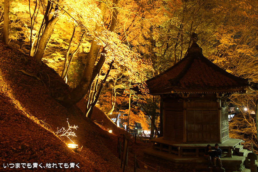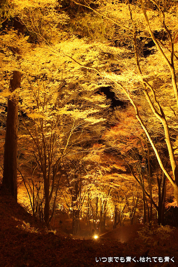 11月28日に仕事帰りにひとりで香嵐渓に行った時の写真を家族が見て「ぜひ行きたい!」というので、今日、仕事を早く切り上げて再び香嵐渓の紅葉ライトアップに行ってきました。今回は、標高254mの飯盛山にも登ってきました。けっこうきつかったですが、山頂で撮った、ライトアップを背景にした家族写真はとてもきれいに撮れました。ただ、ストロボ+スローシャッターでの撮影だったため、ストロボ発光のあと少し動いてしまったところは、背後のライトアップと人物が重なり面白い雰囲気の写真となりました。残念ながらその家族写真は掲載しておりませんが、途中で撮影した奥さんと娘たちの写真は一枚掲載しました。
