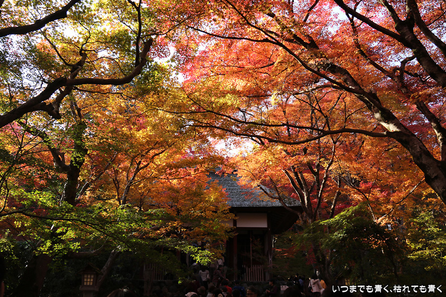 本堂が工事中だったのが残念ですが、紅葉は空を覆い尽くすようなオレンジ色がとても美しかったです。