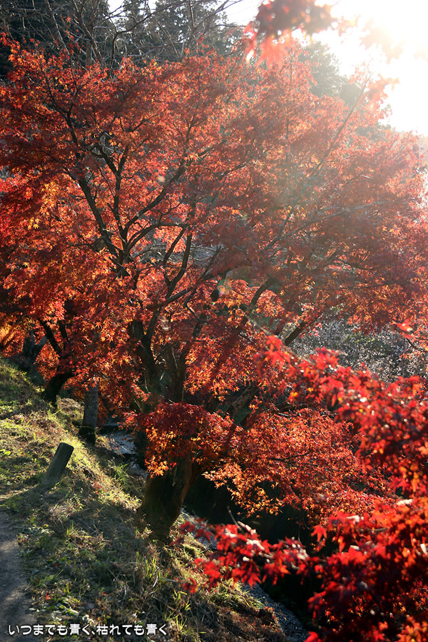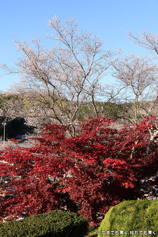 2014年11月 日に撮影した、愛知県豊田市・小原ふれあい公園の紅葉と四季桜の写真です。