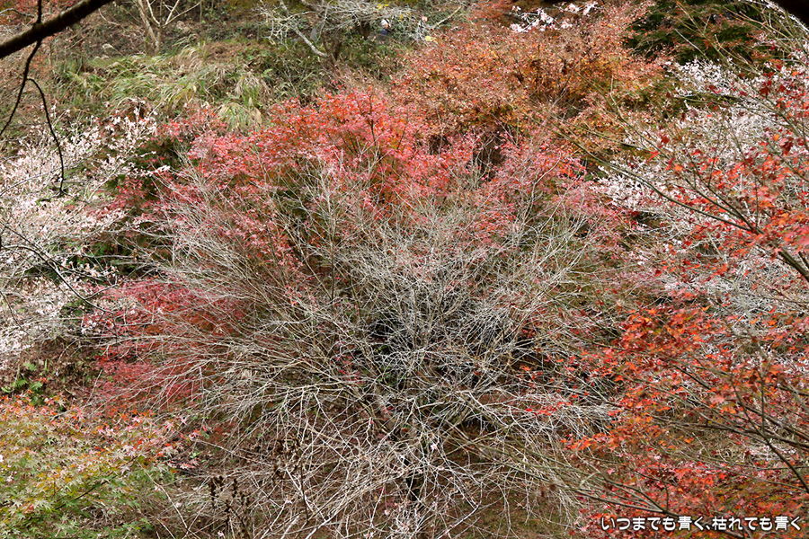 我が家から30km以上離れた市内、小原の四季桜を見てきました。昨年は渋滞に巻き込まれて少し手前の小原ふれあい公園までしかたどりつくことができませんでしたので、今年は朝早くから出発し川見四季桜の里を楽しんできました。今年は四季桜の開花は早くて、すでにもう散り始め。遠くから見るとピンクに見えますが、近くに行くと花がちらほら残っている程度という感じです。逆に紅葉は染まりきれずに赤と緑が混じったまま散り始めています。ピンクと赤の競演はまた来年に期待しましょう。