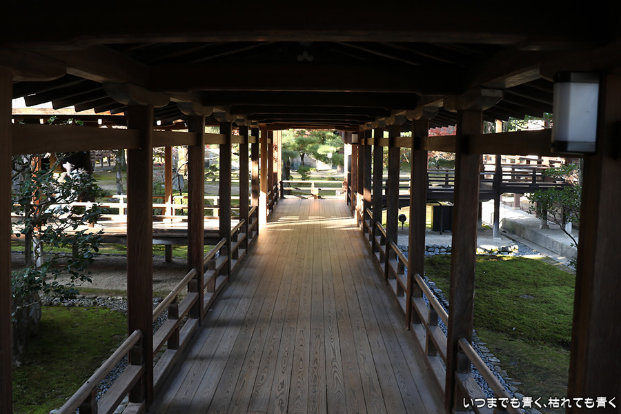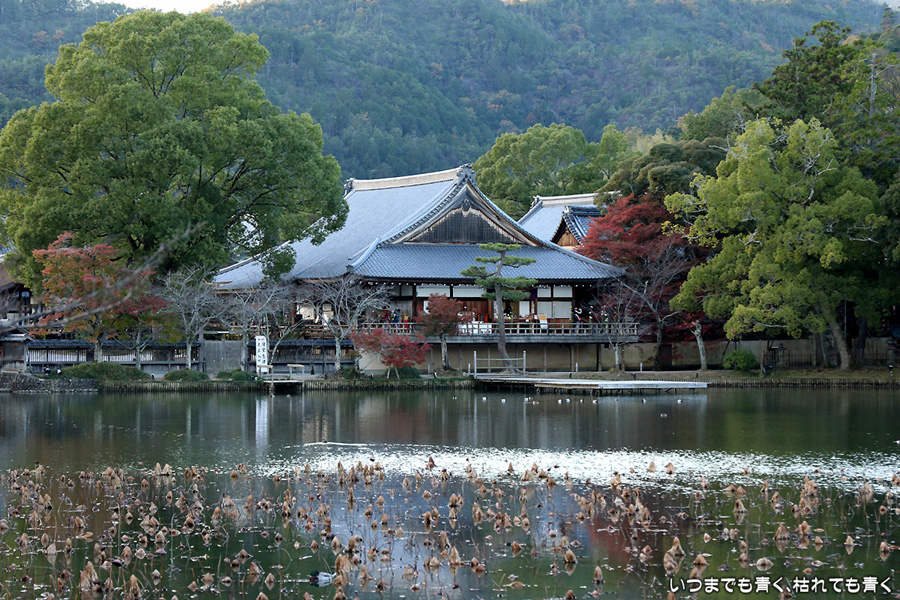 愛宕念仏寺から次に向かったのは旧嵯峨御所である大本山大覚寺。嵐山は何度も来ていますが、大覚寺を訪れるのは初めてです。嵯峨天皇のお寺で広大な建物と敷地、厳かな品のある雰囲気がとても心を落ち着けてくれます。いろんな時代劇やドラマのロケ地でもあり、私にとってはその場所に立つことも楽しい目的のひとつだったりします。拝観しながら、「♪きょうとぉ〜 らんざん だいかくじ〜 ♪こい〜につかれた おんなが〜 ひとりぃ〜」 とつい口ずさんでいる私でした。紅葉は大覚寺もイマイチ。夜のライトアップはそれを補って美しいと蕎麦屋のおかみさんから聞きましたが、あまり絵になりそうにも感じませんでしたのでライトアップはご遠慮して戻ってきました。