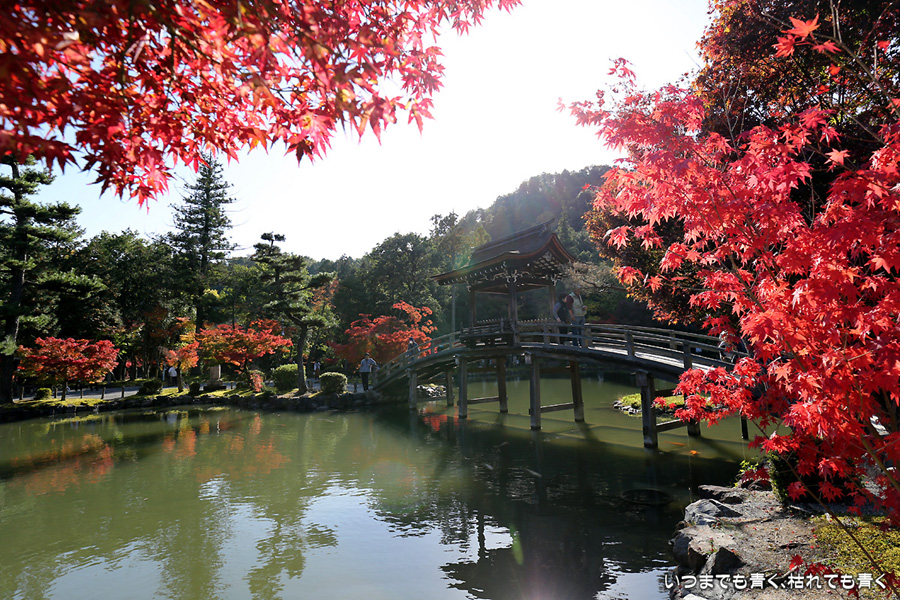 郡上八幡城から曽木公園に向かう帰路、友人が行ってよかったと教えてもらった虎渓山永保寺に立ち寄りました。永保寺庭園の紅葉は真っ赤に染まり、まさに今が見ごろでした。庭園の池やそこにかかる無際橋が紅葉とマッチして絵になります。これだけの庭園にもかかわらず拝観料や入園料は無料で、いつでも気楽に訪れることができます。奥にある虎渓公園では、春には桜が楽しめるようです。
