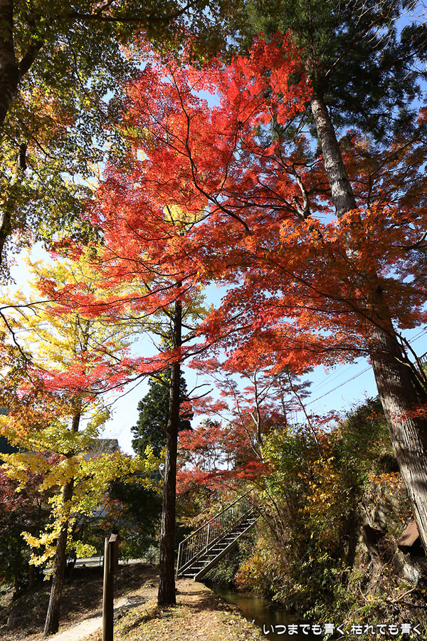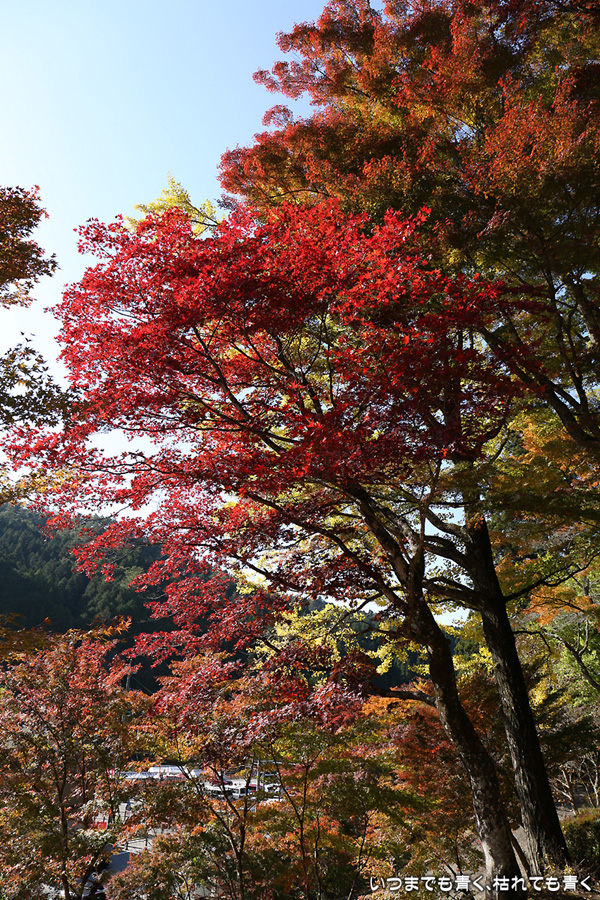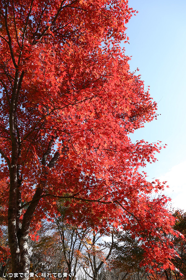 ここ数年は毎年紅葉の時期に訪れている大井平公園です。中央にある大きなイチョウ(写真は撮っていない)は黄色に輝くのですが、今年はこの時期にまだ青々していて、こういうのは初めてです。色づいている木も多いのですが、葉を一枚一枚見ると美しい葉を探すのが難しいくらい傷んでいます。今年の大井平公園の紅葉はハズレなのでしょうか。