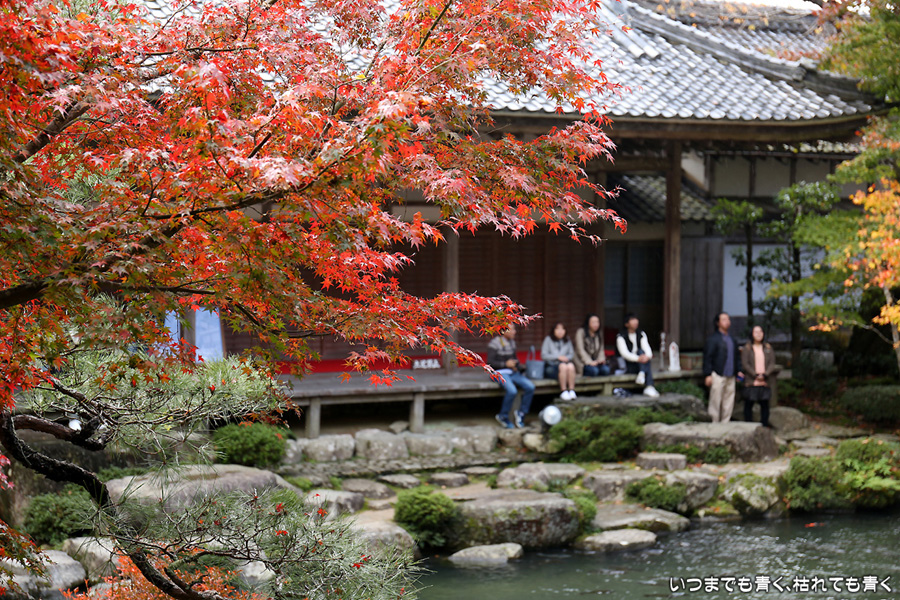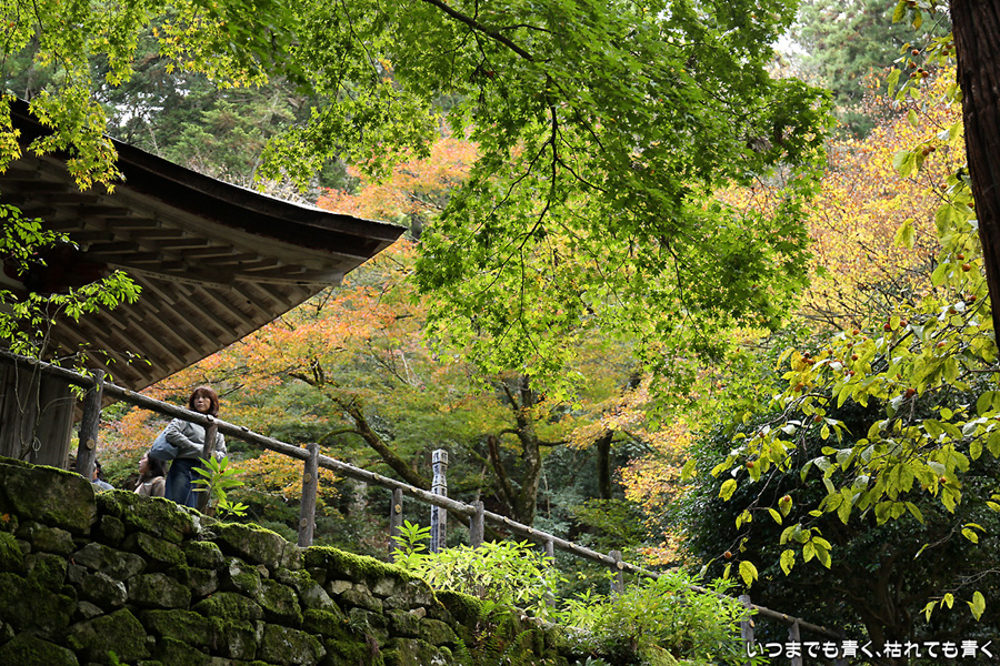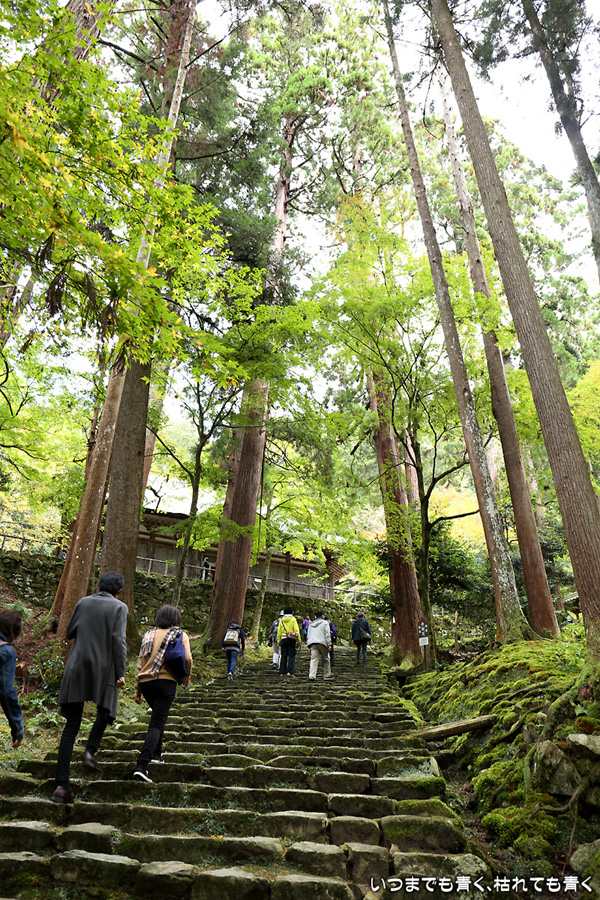 先月、時間切れで参拝できなかった湖東三山百済寺です。庭園は紅葉が進みつつありますが、本堂のまわりは青々としていて紅葉はまだ先といった状況です。杉の木に囲まれた長い石段は、日常を忘れさせてくれて無心にさせてくれます。ここは映画「関ヶ原」のロケ地でもあります。