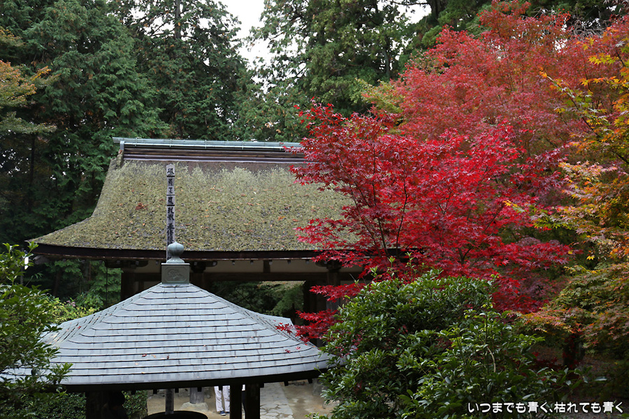 この前に来た時は参道を登るのがきつくて、本堂に着いた時には疲労困憊だった湖東三山金剛輪寺です。今日はその参道を軽快に登ることができました。先が見えていると気分が違うのかもしれません。紅葉は庭園が美しく色づいていましたが、三重塔のまわりの紅葉はこれからという感じでした。こういう場所は心落ち着きますね。