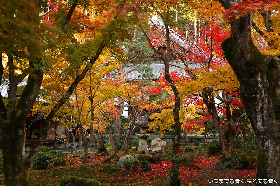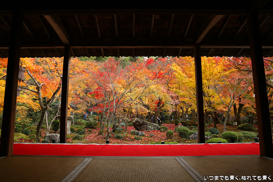 ここの紅葉と雰囲気は思っていた以上に素晴らしく趣がありました。書院から眺める十牛之庭の紅葉は最高でした。立ち去るのが惜しい気持ちになって予定よりもかなり長居をしてしまいました。なので、次に予定していた赤山禅院はあらためて訪れることにしました。