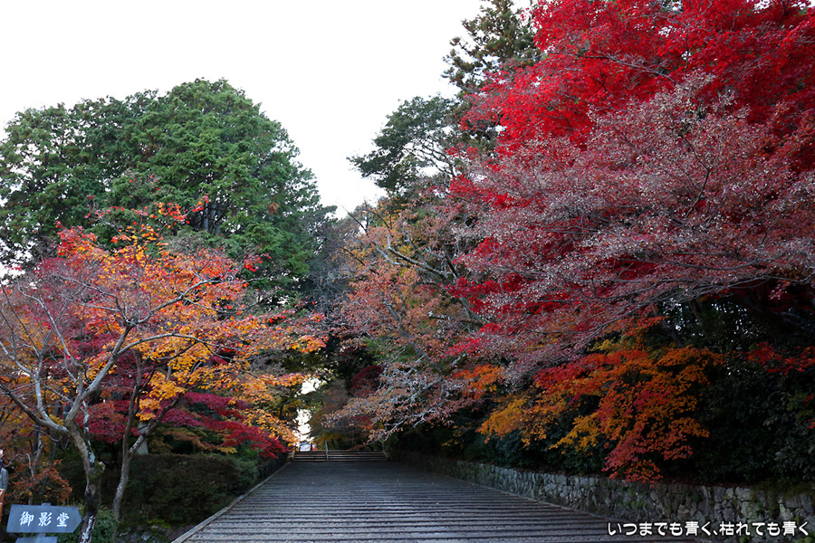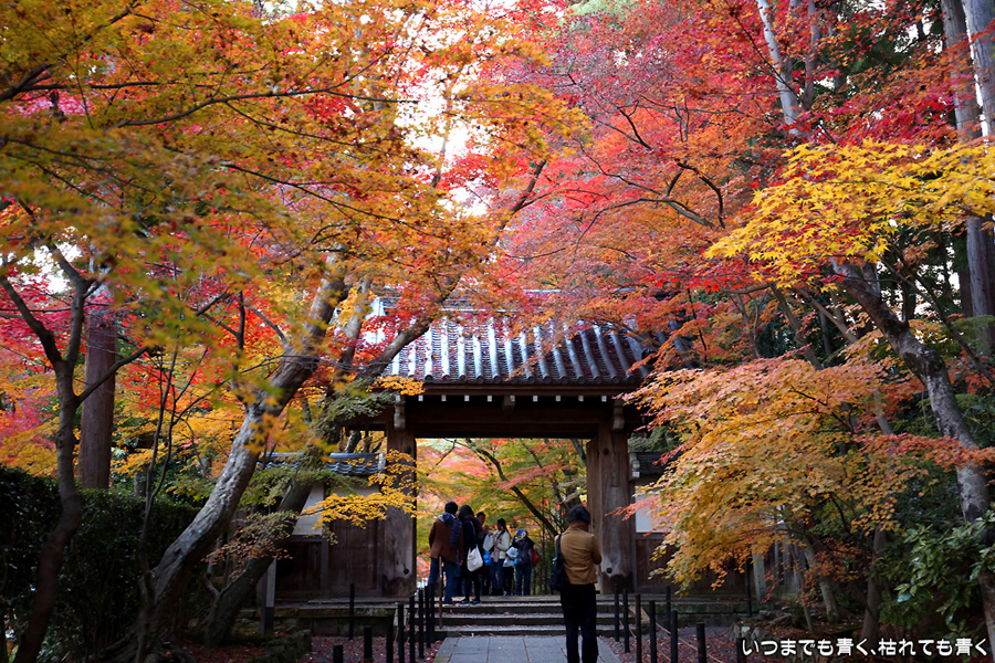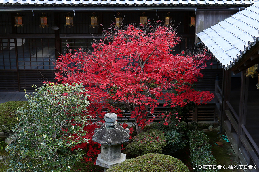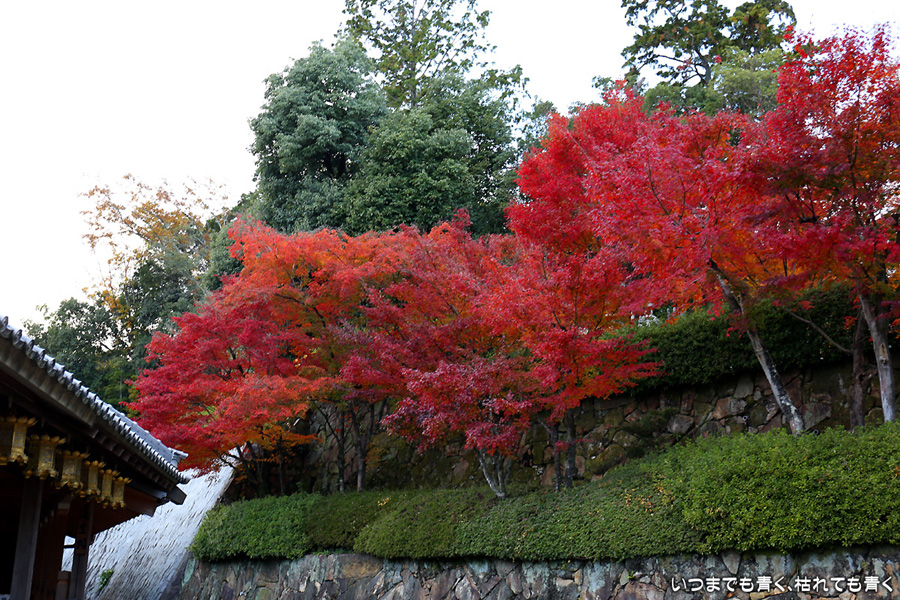 長岡京光明寺に着いたのが閉門近くだったため、あわただしい拝観となってしまいました。紅葉の参道が美しかったのですが、構図を決めて写真を撮る余裕もなく、夕方で光量も不足気味でせっかく来たのに残念でした。最後は追い出しおじさんに追い出されてしまいました。閉門時間だからと言って、参拝者たちに「早く出ていけ」、「もうカメラのシャッターは押すな」、「ゆっくり見たいならもっと早く来い」(口調のまま)という言葉は無いよなと思ってしまいました。紅葉は美しいけど、遠くから来た観光客に対して配慮のない上から目線のお寺でした。