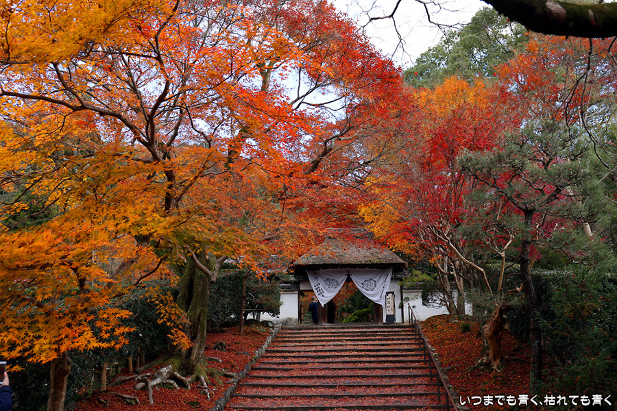山門、参道は絵になる紅葉がまだ楽しむことができました。秋の一般公開中で本堂・書院・庭園を拝観することができましたが、境内や庭園の紅葉は残念ながらすでに見ごろは過ぎていました。