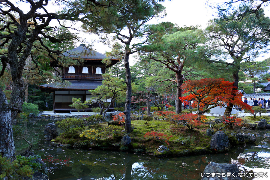 銀閣(観音殿)自体は地味な建物ですが、庭園と合わせて見ると、個人的には撮影ポイントが限られる金閣寺よりも絵になる情景が多いように思います。紅葉は時期的にそれほどでもなかったですが、初めての銀閣寺は思ったよりは好印象でした。