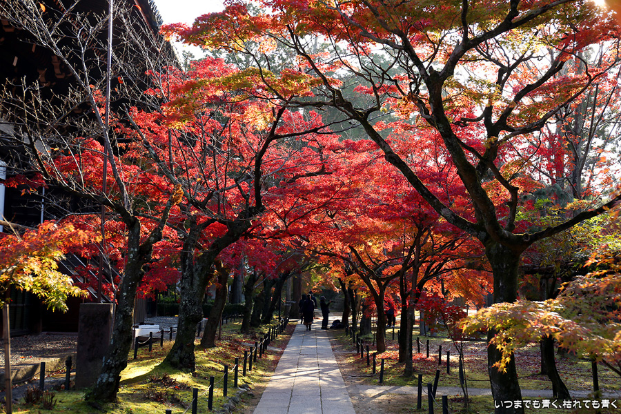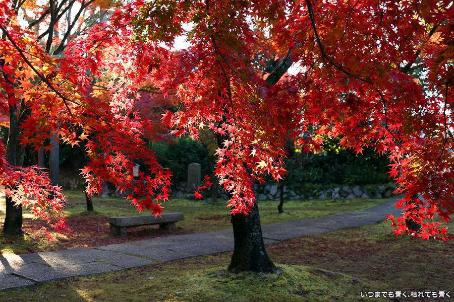 最近はクルマを金戒光明寺の駐車場に置くことが多いので、近くにある真如堂に訪れることも多くなります。朝日の差し込む真如堂の紅葉は色が映えて素晴らしく素敵でした。写真は、その朝日の扱いが難しくて逆光で写すと色に陰が目立つのがまだ撮影技術の未熟なところです。