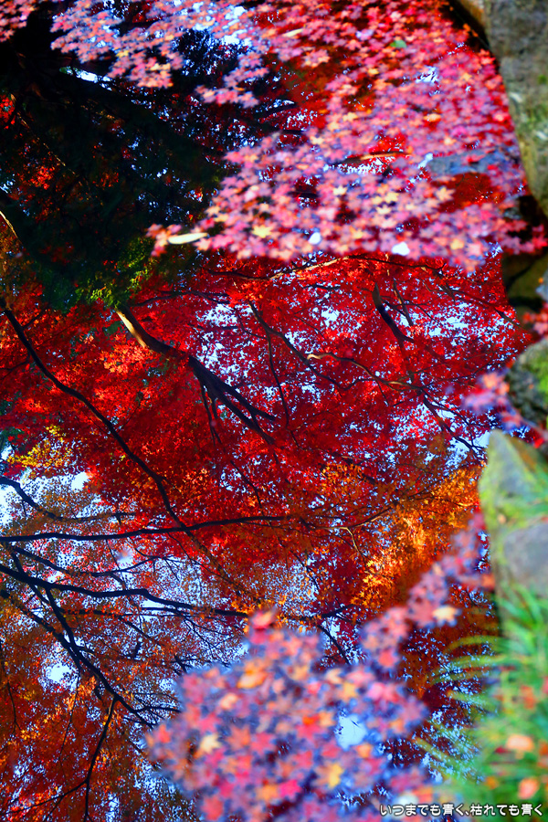 真如堂を出たところで年配の男性に「栄摂院の紅葉と池に浮かぶ落葉がきれいでしたよ。ぜひ行ってみてください」と声をかけられたので、金戒光明寺の方に少し戻って初めて栄摂院を訪れてみました。昨年も真如堂で「霊鑑寺の紅葉が素敵でしたよ」と年配の女性に教えてもらったので、真如堂では不思議な縁をいただけます。栄摂院は金戒光明寺の塔頭でこじんまりしたお寺ですが、縁側に座って眺める庭と紅葉は本当に美しく静かで落ち着く場所です。